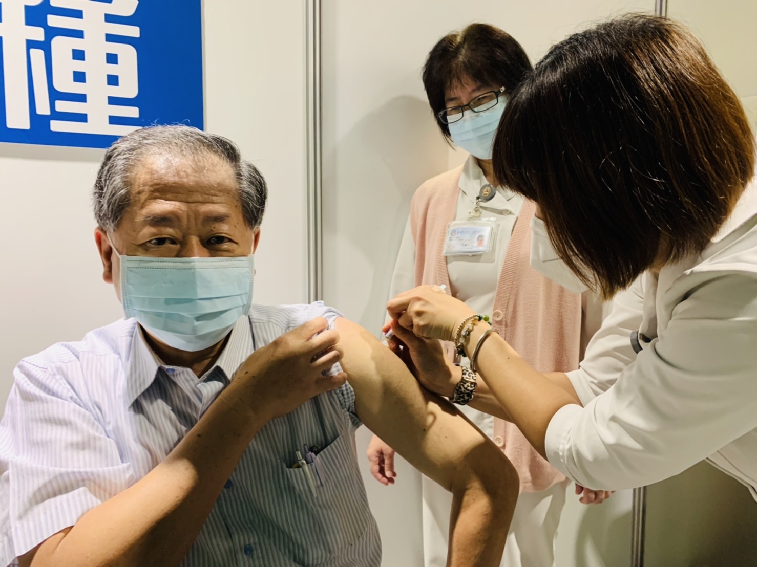 開打第一天,70歲的陳先生一早醫院開門就來排隊,每年都來接種流感疫苗,還秀出健保卡上的COVID-19疫苗注射貼紙,直說:「打了有保護力,身體健康疫苗不可少!」,