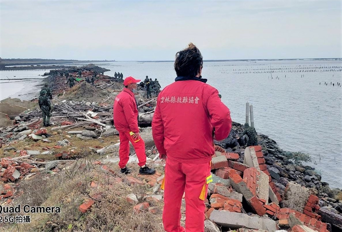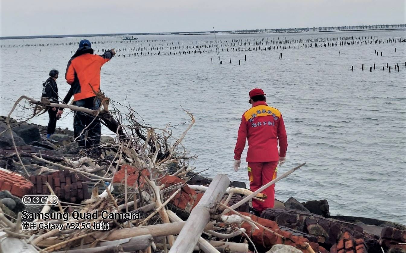 雲林縣救難協會由理事長黃坤原率領弟兄,趕赴東石水溪靶場進行岸際搜救行動。
