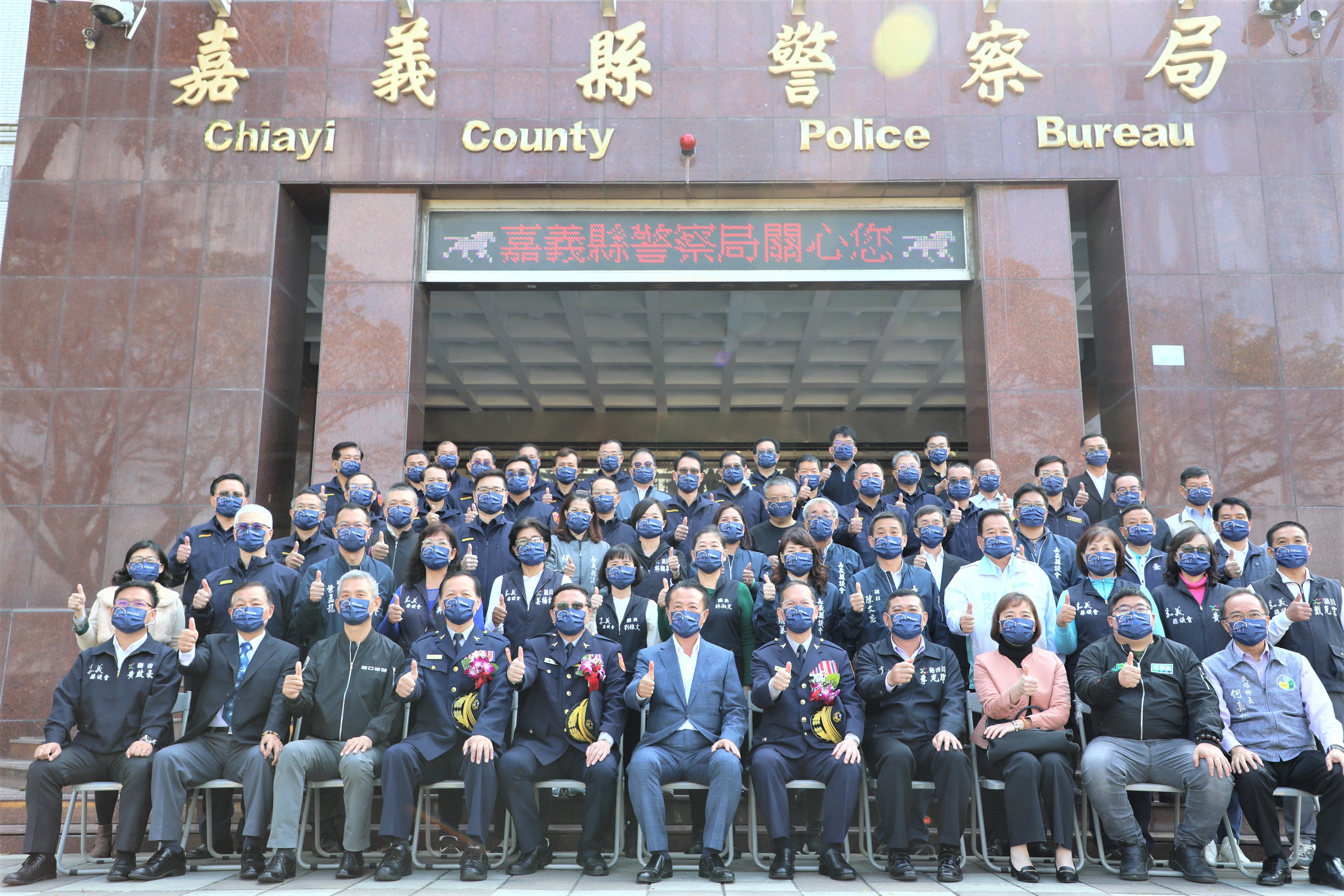 翁縣長指出,「竊盜案件預防與偵破」及「轄區治安不容挑戰」,是他對警政同仁的兩大要求;陳局長長期從事刑事工作,相信以他的刑事專長,一定能強化偵防效能,同時落實交通安全作為和宣導交通疏導措施,領導同仁勇於任事,依法行政,審慎執法,確保民眾生命財產安全,建構嘉義縣成為「安心、安定、安全」家園。