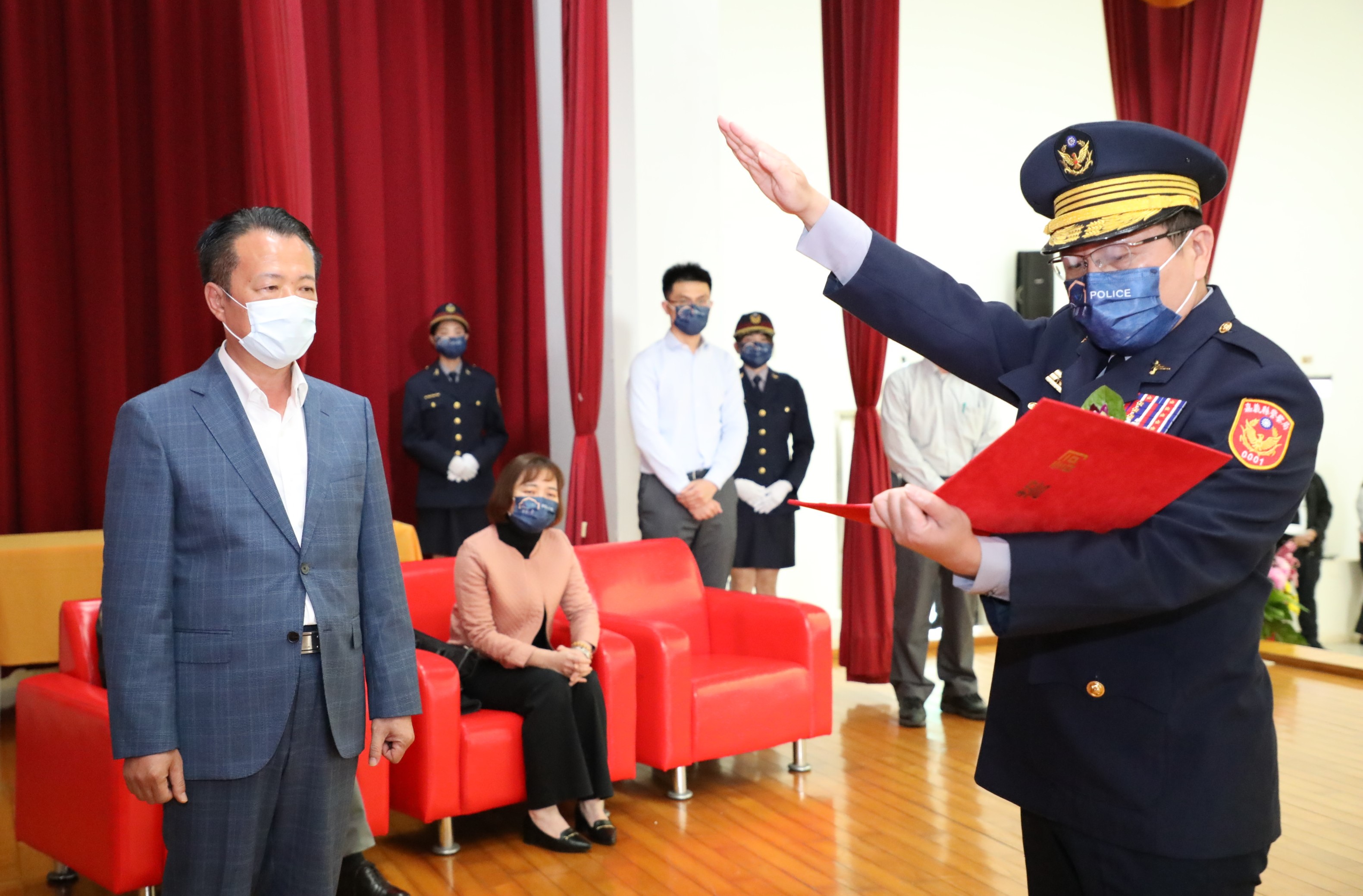 嘉義縣警局新任局長陳明君(右)宣誓就職。