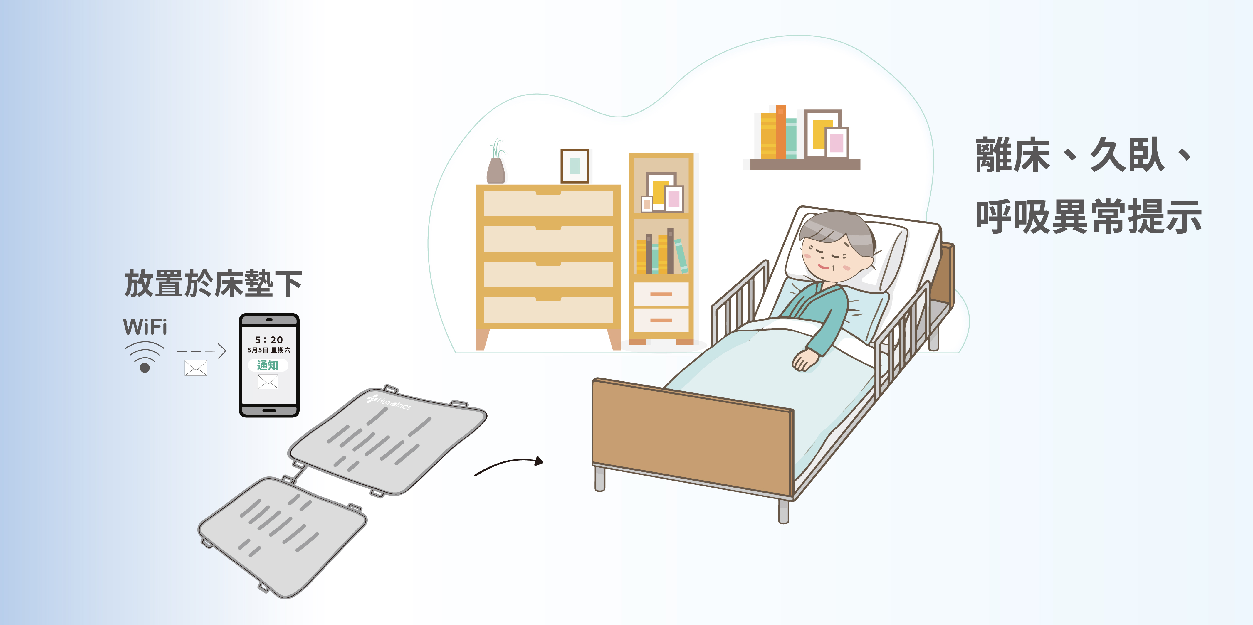 旗津醫院與新創企業合作,引進iCue智慧感測墊,感測墊置於床墊下沒有異物感,還能幫助照護者24小時關心高齡者的作息。感測墊內建多組感測器,透過各部位的壓力變化,長期且連續的非接觸式監測,結合AI演算法能提供離床通報、呼吸率紀錄、睡眠休息狀態紀錄、臥床過久提示等多項資訊於APP上,若高齡者突然起身離開床,也能及時發出離床警示通知照護人員,可有效降低跌倒風險,守護安全。智慧系統除了提供完整資訊協助掌握長輩的資訊,也能減輕照護者的壓力,讓照護人員與家屬輕鬆且周全的照顧長輩,提升整體照護品質。