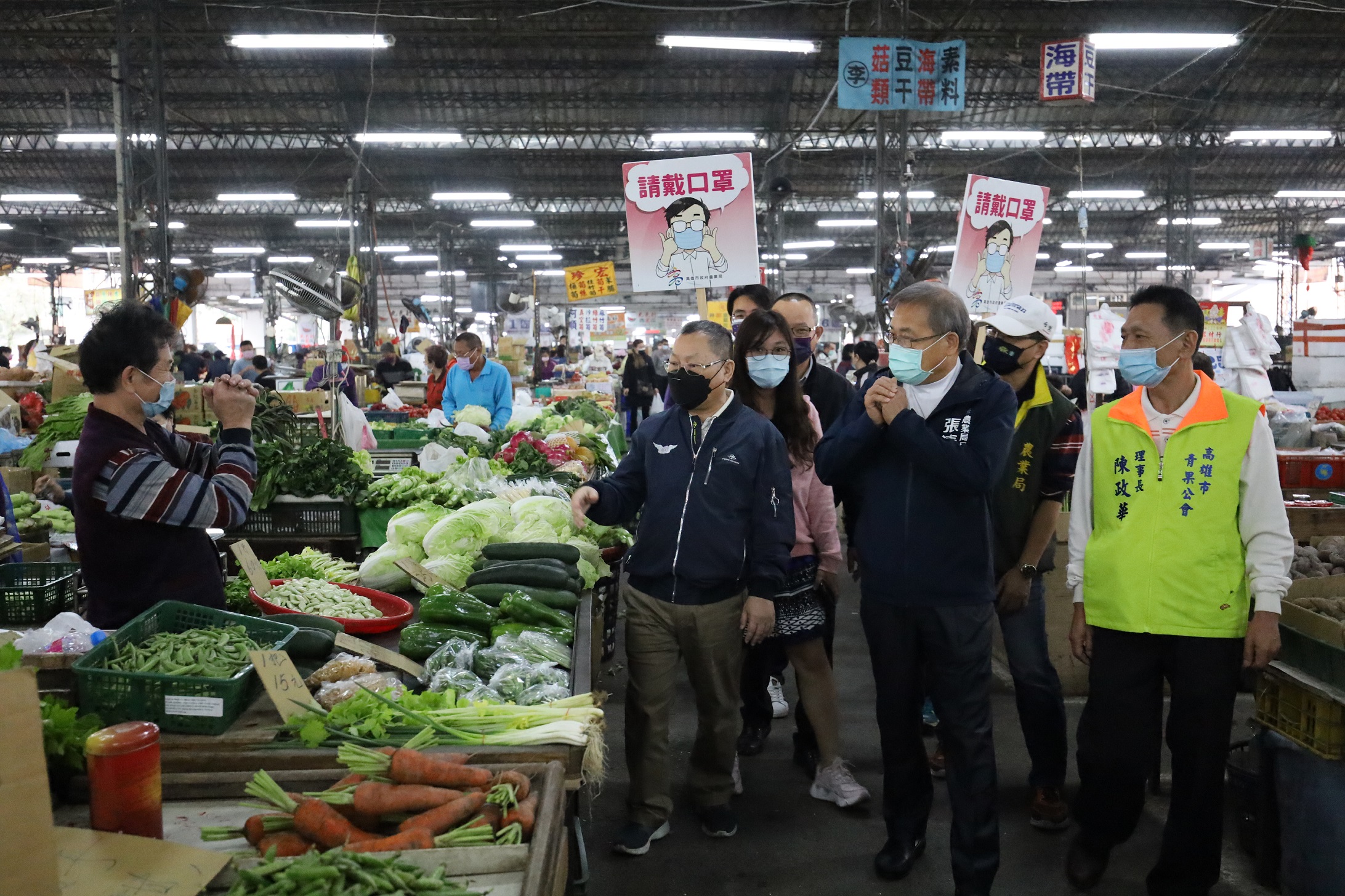 農業局再次重申農曆年節將至,各批發市場將進入採買高峰期,須大家耐心配合防疫政策,落實防疫到位,也感謝所有市民朋友的努力及配合市府防疫措施,也呼籲民眾應配合政策出入公共場所必須全程配戴口罩、量測體溫及落實實聯制登錄,請民眾配合掃QRcode入場,未戴口罩依法裁罰3000~15000元罰款,共體時艱齊心防疫,共同守護你我的家園。