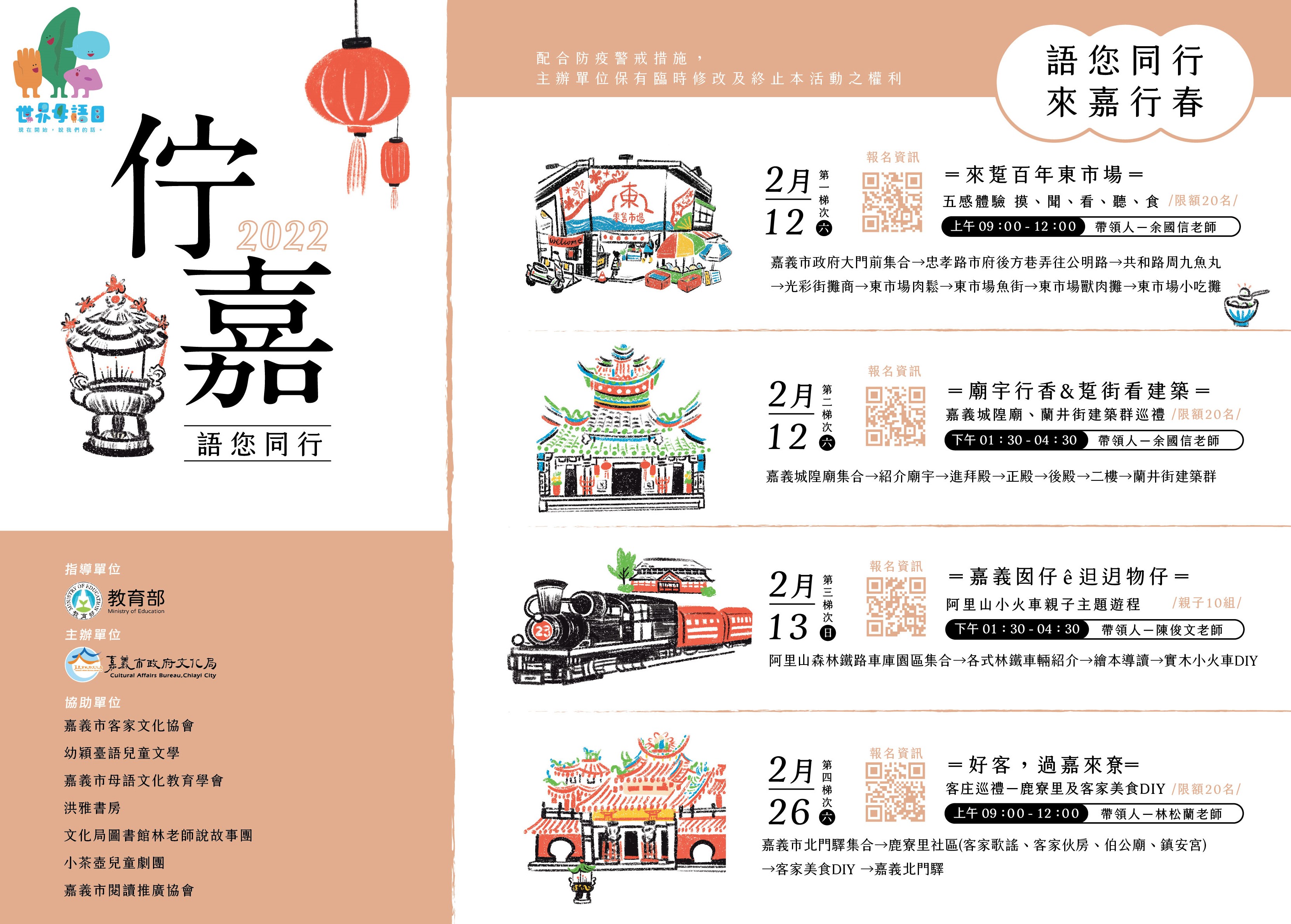 〈佇嘉.語您同行〉系列活動,內容包含「語您同行─來嘉行春」,共策辦4條走讀動線。