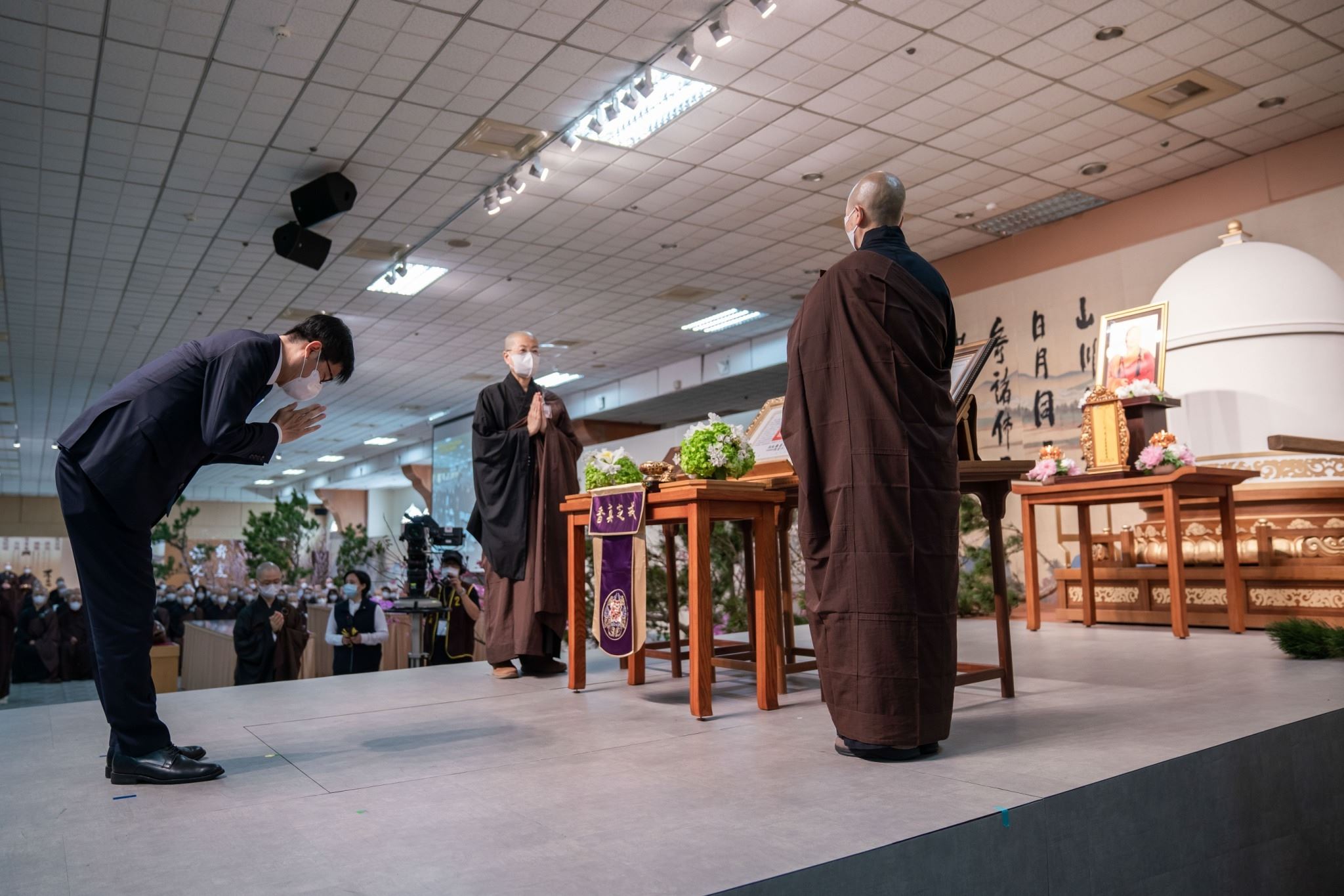 總統蔡英文在典禮上,親自頒贈褒揚令,讚揚星雲大師創辦佛光山,弘法80餘年,標揚「文化、教育、慈善、共修」宏旨,倡提「做好事、說好話、存好心」嘉舉,在文化、教育及慈善等領域上貢獻卓著,一生致力推廣人間佛教,造福眾多信眾。