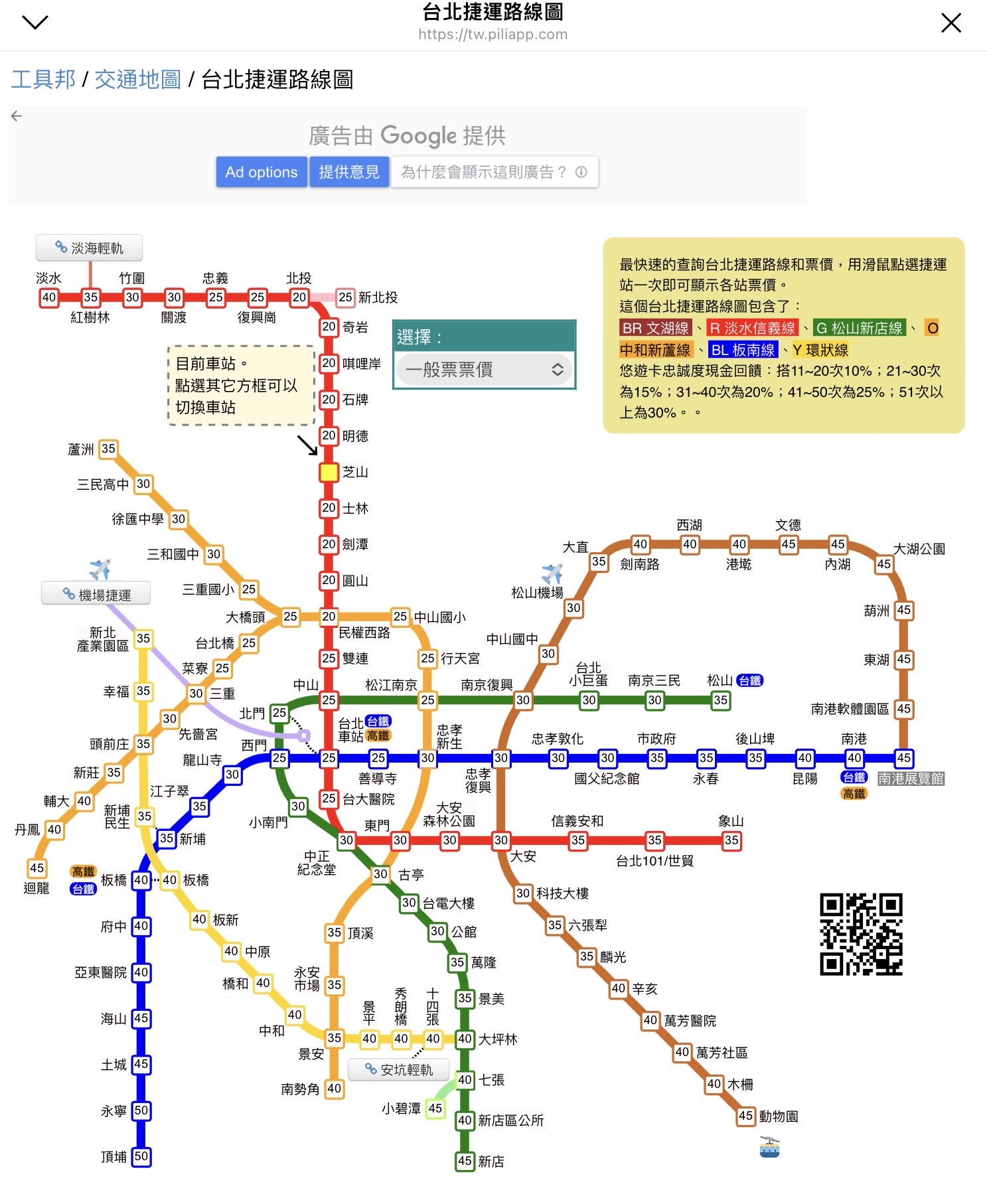 《2023年台北捷運新地圖 》您現在那一站只要點一下其站名,其他各站的票價都會全部呈現。早末班車,臨近公車以及出口之地圖