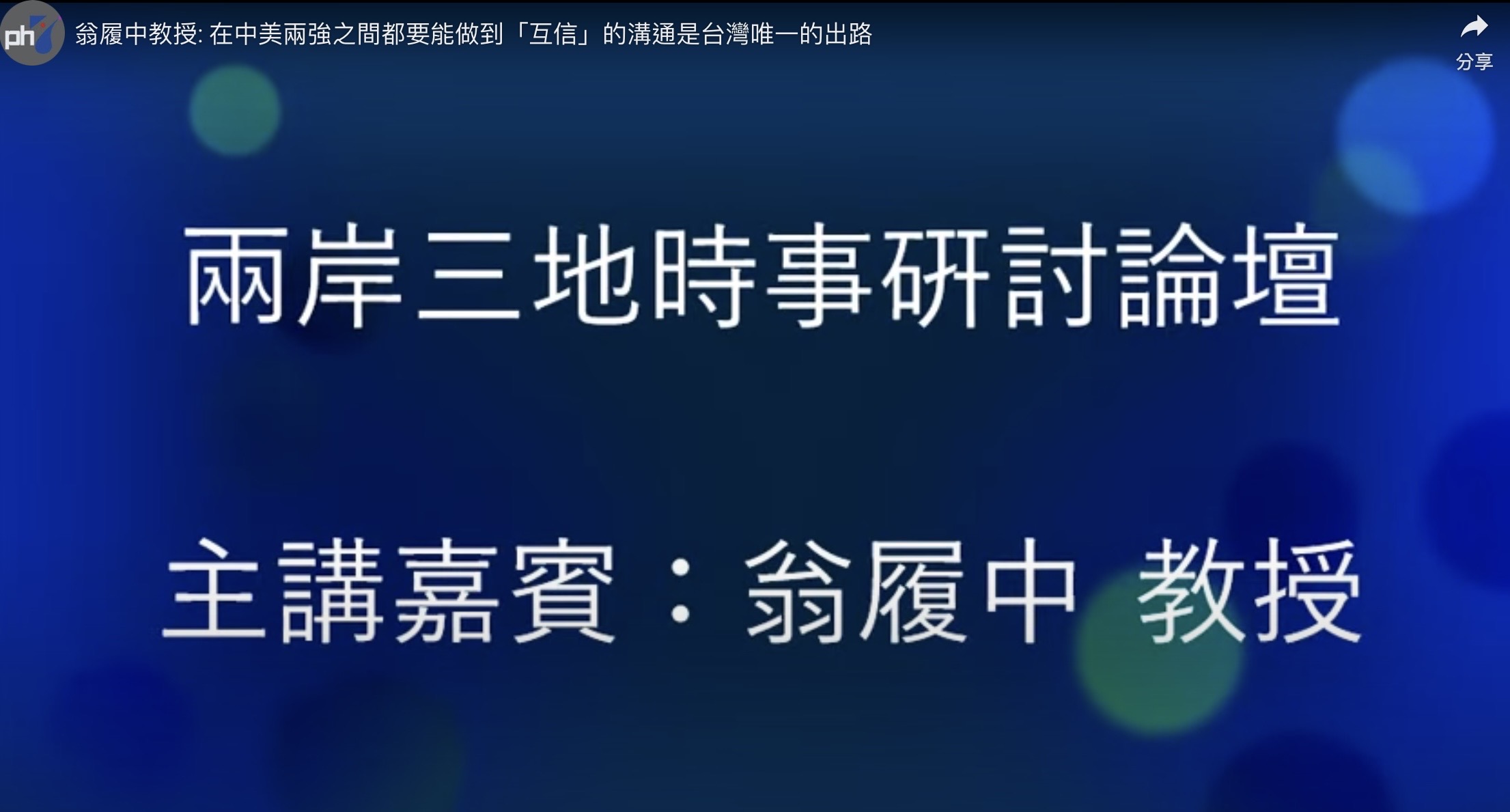 翁履中教授在美國加州的演講:「在中美兩強間都要能做到互信的溝通是台灣唯一的出路」