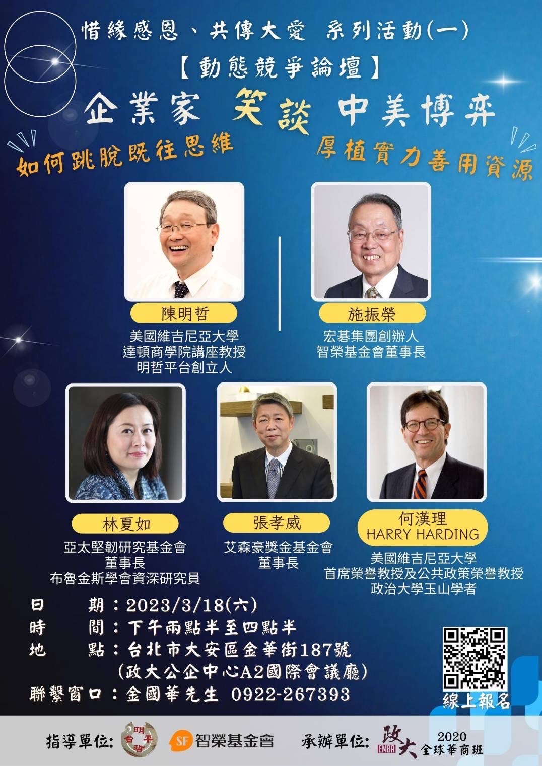 【惜緣感恩,共傳大愛】系列活動(一)3/18動態競爭論壇:企業家笑談中美博弈