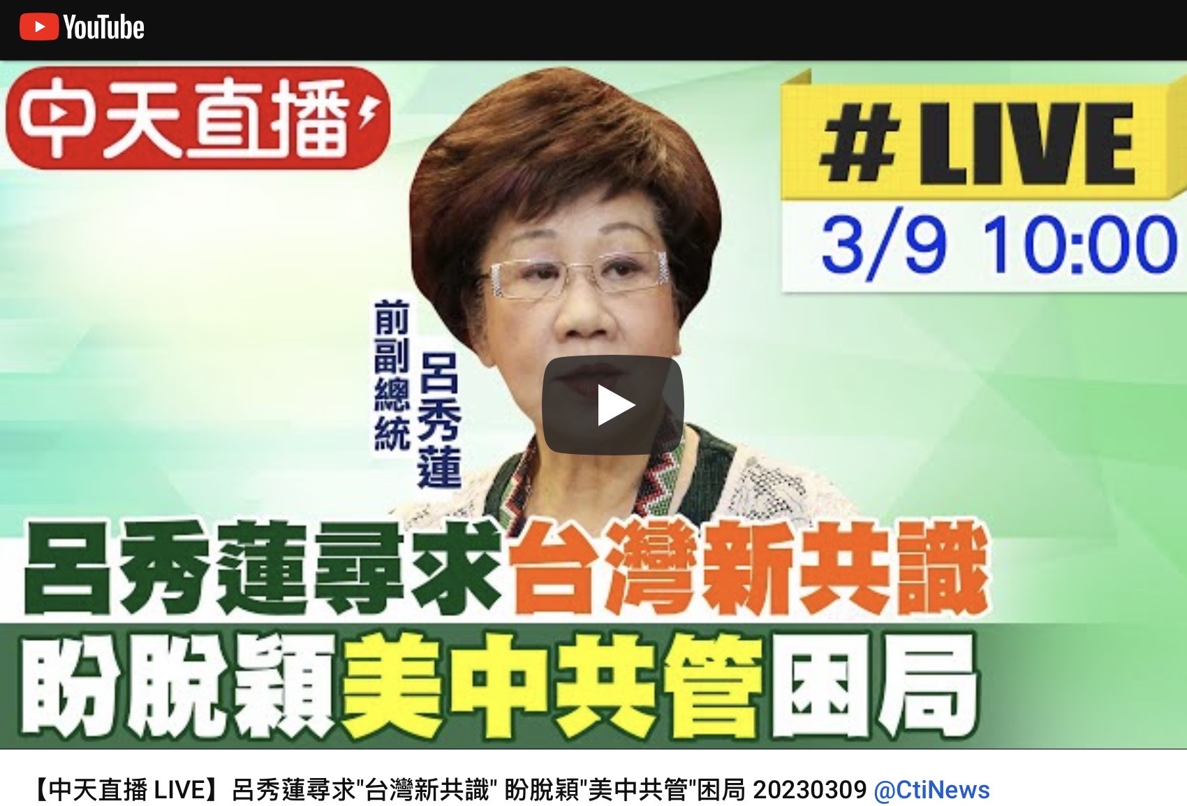 呂秀蓮:尋求台灣新共識、盼脫離美中共管的困局
