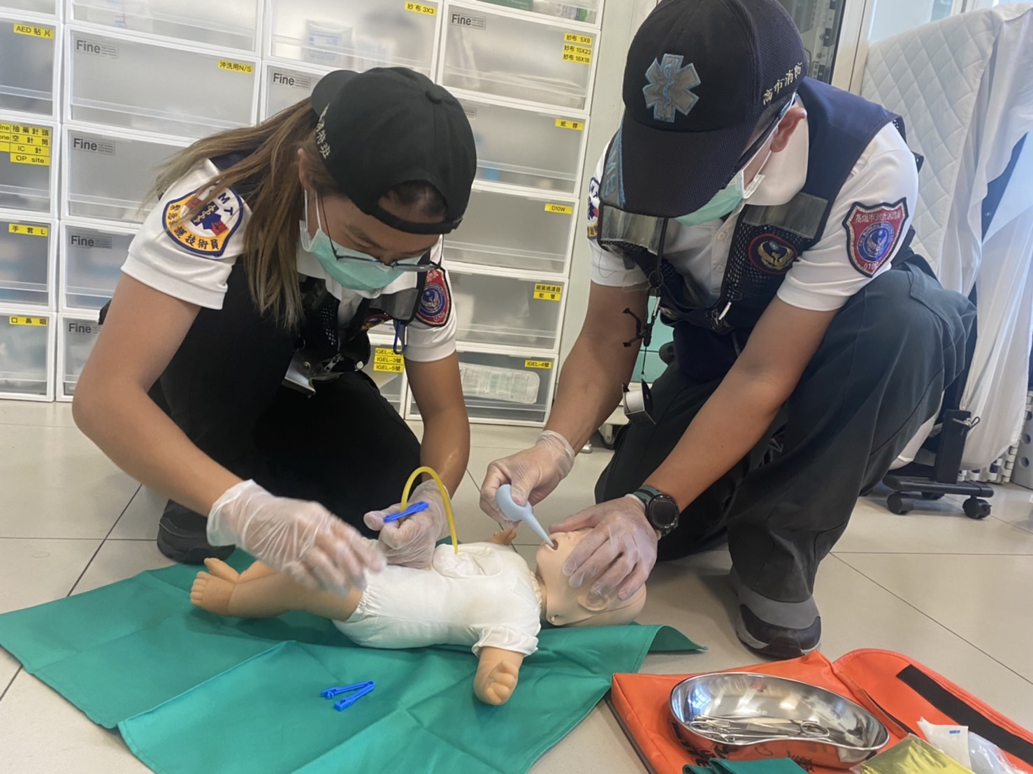 救護人員到達現場時,發現孕婦身處廁所,立刻拿出急產專用生產包,引導協助生產,由救護人員接生時發現,自孕婦體內生下的寶寶,竟仍被包覆在羊膜囊裡,羊膜囊完整未破,是機率僅八萬分之一的罕見人魚寶寶! 救護人員小心翼翼地剪破羊膜,立即接手評估新生兒之生命徵象,將新生兒擦乾並改用無菌之生產巾包裹保暖,完成初步處置後將母女倆快速送至醫院。