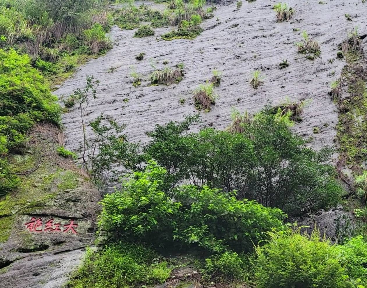 大紅袍母樹在岩壁上,該處山壁上鐫刻「大紅袍」三個紅色大字。
