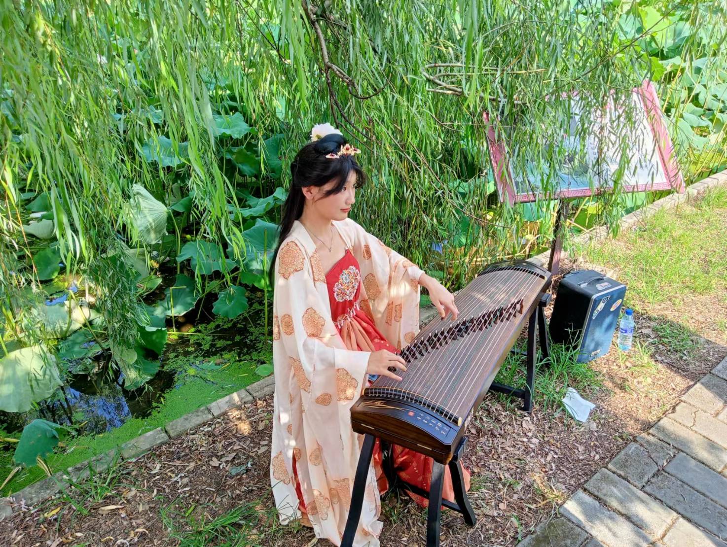 遊完九龍湖,接著到塘前鄉參加為期2天的第六節「荷你有約」荷花節活動,分別有「荷樂不為」音樂會、釣小龍蝦、漢服遊園、詩歌朗誦、京劇表演,以及水上樂園、親子漂流、荷花宴等一系列活動;另外還特別安排多位少女,在荷花池旁表演拉二胡、彈琵琶,柳樹下演奏古箏,供遊客欣賞,正逢暑假期間,因此吸引大批家長陪同小朋友,一起共度荷花節。