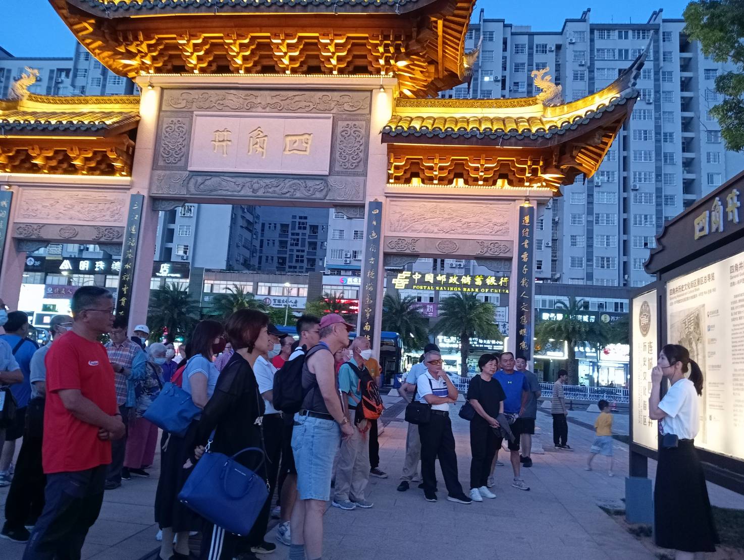 7日晚,在連城縣統戰部江副部長陪同下,來自臺灣台東縣參加第十五屆海峽論壇兩岸(連城)棒球文化節的嘉賓,前往集文化、教育、體驗、旅遊為一體的四角井歷史文化街區參訪,一踏進四角井,就被五彩繽紛的街景所吸引,在導遊的解說下,知道四角井的歷史與開發經過,接著是一面「四角井記憶」牆,牆上如同清明上河圖般的雕刻出四角井的歷史。