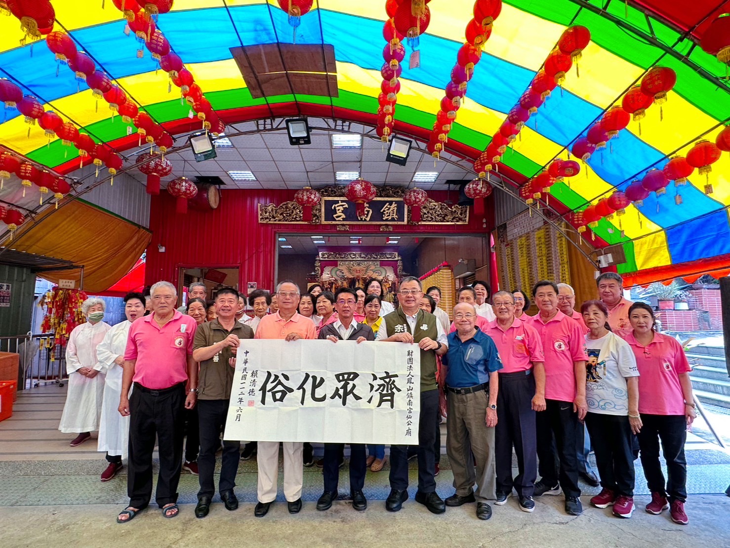 8月30日星期三11:00,余政憲在許智善主任委員(民進黨高雄市黨部)、何秉昌董事長(鳳山仙宮廟)、李金水常務監事(鳳山仙宮廟)、邱國友常務董事(鳳山仙宮廟)陪同前往鳯山鎮南宮仙宮廟頒贈賴清德副總統墨寶「濟眾化俗」,濟眾-救助眾人,化俗-風俗得教。