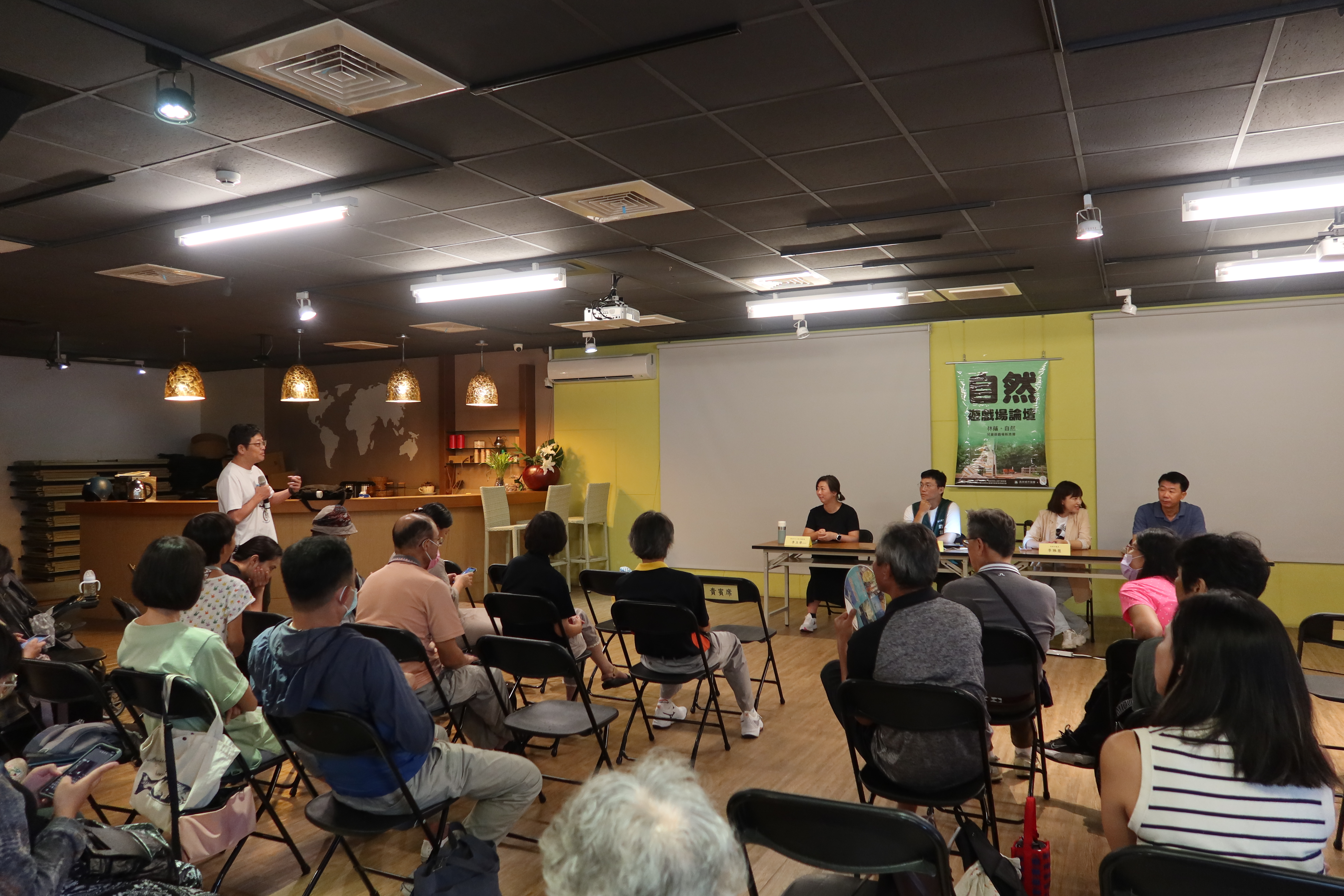 為了讓公園找回林蔭,讓遊戲場能成為兒童自然遊戲的場域,森林城市協會與還我特色公園行動聯盟、財團法人高雄市私立康和社會福利慈善事業基金會,於9月9日下午,舉辦了一場「自然遊戲場論壇」,主講人是特公盟副理事長李玉華、森林城市協會理事長莊傑任,邀請高雄市議會特色公園小組召集人李雅慧議員、高市府公園處主秘陳錦宏與會論壇,還有四五十位民眾於風雨中依然熱清參與,都讓今日的盛會別具意義。