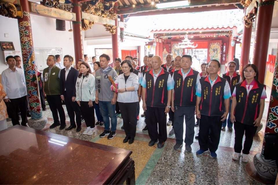 余政憲宗教列車28日開往南投草屯朝陽宮,朝陽宮主委周宥騰、羅美玲立法委員、蔡銘軒立委候選人等人陪同小英總統揭匾參拜。