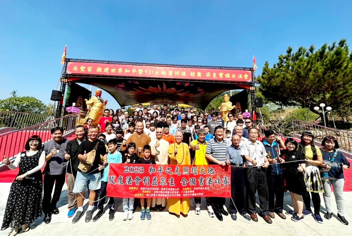 〔本報記者陳明成高雄報導〕天聖宮阿蓮媽廣發英雄帖,為921罹難亡魂超渡祈福。於農曆9月21日~27日(國曆11月4日-11月10日共計7天)舉辦大型法會,11月4日(六)第一天辦理全國現場書法比賽,以書寫拔度亡靈之詩詞開啟序幕圓滿成功。