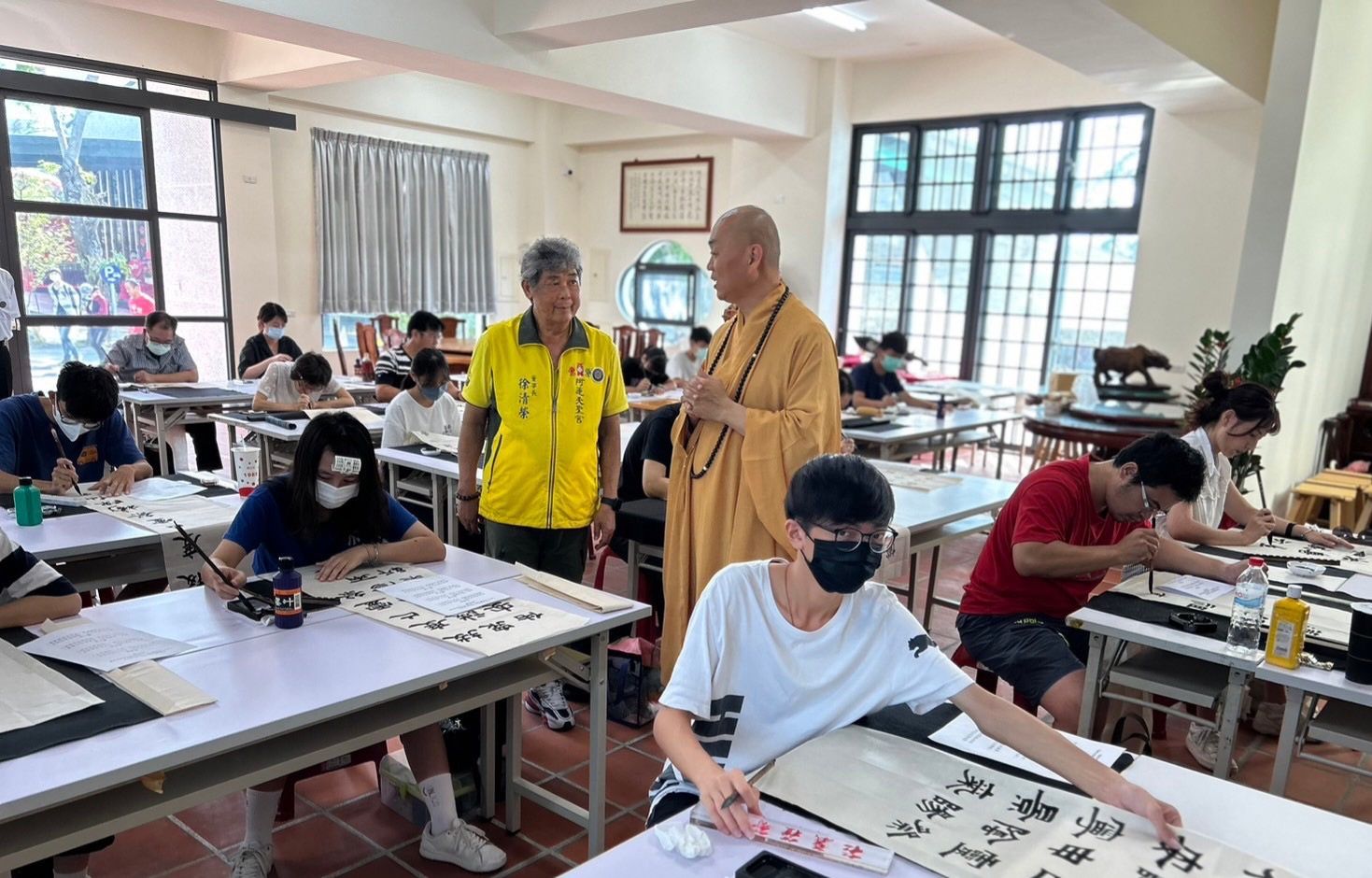 最後蔡莉珠宮主說明,感謝大家對這場非常有意義的書法比賽鼓勵與支持,歡迎大家常常回來參拜聖母,護佑大家一切平安,也感恩沈燕誠校長由嘉義趕來,江景榮、黃俊雄、吳麗泰等理事長,陳麗卿、李碧娥、簡宇岑、葉文進、王秀雲等富豐團隊成員共襄盛舉幫忙,弘揚聖法及書法,集福延慶,拔度亡靈,法輪常轉,功德無量。