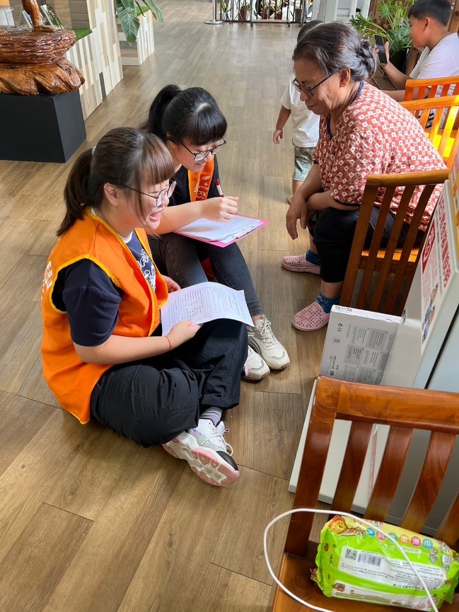 參與計畫的營養系學生對於能進入部落與在地居民面對面互動,還能藉此認識原住民族文化,大家都認為是非常難得的機會。大三的唐敏薇、廖珮婷、林巧湲、楊宜欣透過居民填寫健康問卷和體位測量,瞭解大家的飲食習慣,進而協助傳遞營養訊息;學生們紛紛表示,在學校的營養評估課程中學到許多體位測量的方法,可以實際操作並向受測者解釋測量的結果及分析,讓每一位居民瞭解本計畫的幫助,無論是學生展現在校所學,還是在地民眾健康飲食觀念的提升,雙方都是最直接的受惠者。