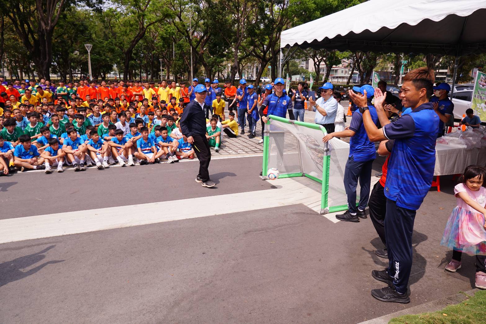 開幕儀式由台電公司蔡副總經理志孟主持,在永安區維新國小太鼓隊氣勢磅礡的鼓聲中揭開序幕,參賽學員及家長約600人齊聚一堂,好不熱鬧!現場出席貴賓有高雄市政府運發局侯尊堯局長、高雄市足球委員會劉世芳主委,並有地方民意代表高雄市議會黃秋媖議員,以及宋立彬議員、林志誠議員、李亞築議員、陳明澤議員、黃明太議員等服務處代表參加,也邀請睦鄰區永安區里長、茄萣區公所李秋利區長及茄萣區里長、彌陀區公所歐劍君區長、湖內區公所賴美娥區長、岡山區公所陳振坤區長等參加。