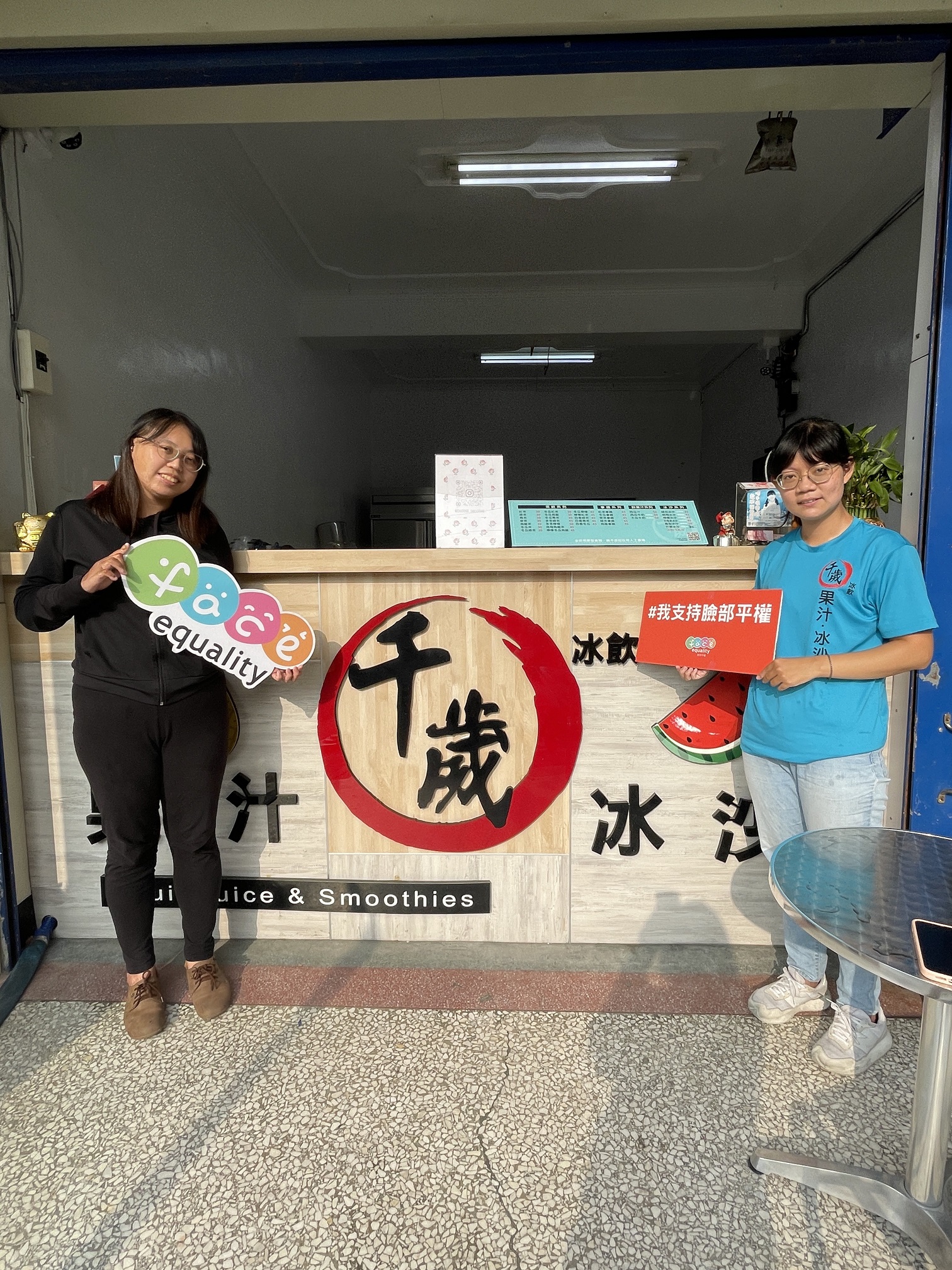 陽光基金會南區中心也特別感謝京都苑鯛魚燒美麗島旗鑑店、O卡桑黑白木耳露養生飲專賣台南林森門市、全佑甘草芭樂漢神巨蛋門市、米特寵物美容旅店、尋早早餐熱河店、千歲果汁冰沙、京妍生技、長青燒仙草等響應店家一起推廣臉部平權活動,歡迎高雄、台南地區民眾即日起至6月30日前至響應店家完成平權任務,參加抽獎活動。