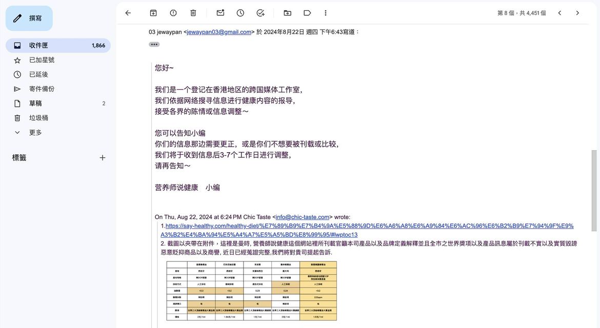 ”營養師說健康“內容網站來信 :