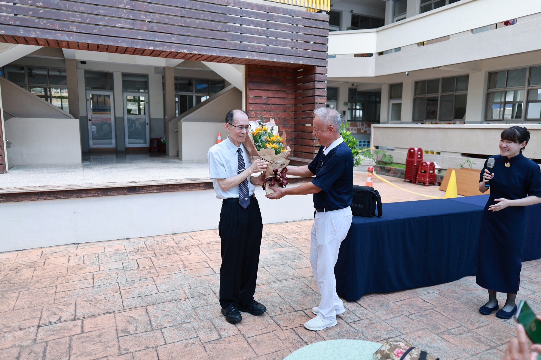 當沈哲民醫師以生動活潑的語彙,講述如何在秋冬增進身體的抵抗力與免疫力時,鄭楊慶在眾目睽睽下,獻上鮮花給沈醫師,因這一舉動非在事先所排定的程序中,見者一頭霧水,為何是一位大男人獻花而非妙齡美女送花。