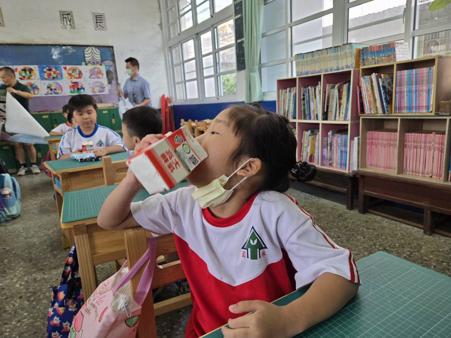 不同以往的下課鐘聲,取而代之的是「牛仔很忙」的音樂響起,林園國小的小朋友們爭先恐後地前往學校川堂,原來是小朋友翹首以盼的鮮奶送來學校了,隨著各個班級的值日生們將鮮奶送到教室,在老師們的叮囑下,小朋友們皆喜孜孜地喝著高雄市在地的美味鮮乳,並在老師的指導下,將喝完的紙盒清洗後回收,一切過程井然有序。高雄市今(10/8)日有林園國小等4校將近3,000位小朋友率先開喝。