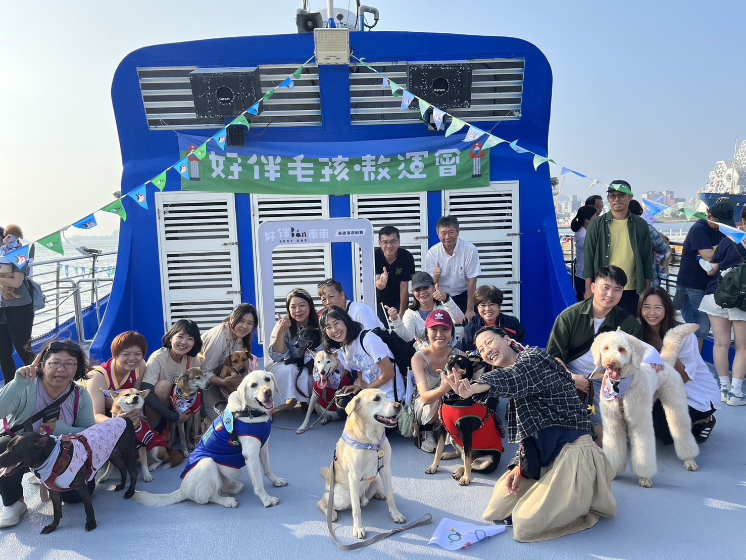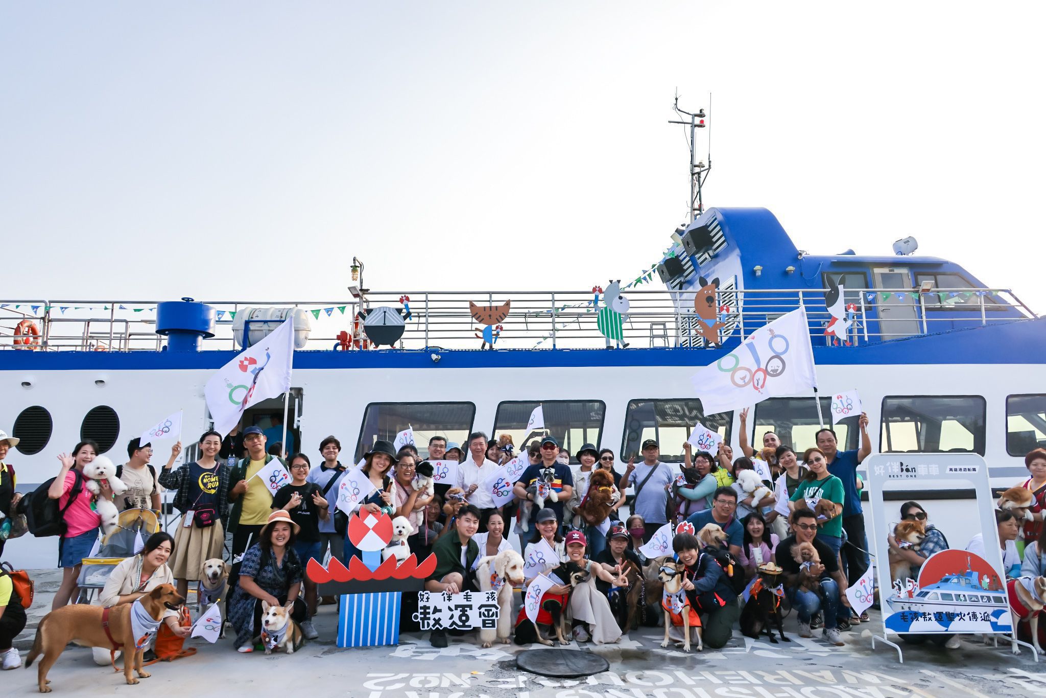 高雄市動物保護處今年度結合全國首創的「好伴bàn毛孩嗷運會」推出的一系列的「好伴bàn車車」活動,大受歡迎,這次將這股熱潮從陸地延伸至海洋,以巴黎奧運會選手們在塞納河進行的「渡船進場」開幕式為靈感,將高雄市輪船股份有限公司觀光船「真愛輪」打造成萌寵專屬的「好伴bàn毛孩號」遊船,推出一場專屬毛孩選手代表隊的「毛孩嗷運聖火傳遞」遊程。活動全程由專業引犬員及獸醫師陪同,毛孩們有專屬座位,不須受籠子或袋子束縛,和飼主一起自由自在地享受高雄美麗的港灣風光,象徵著人與動物共同參與社會活動的融合與和諧,為動物界的年度盛事再添亮點。