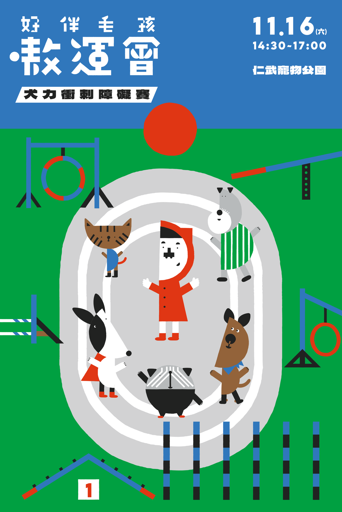「2024好伴bàn毛孩嗷運會」系列活動第三場「犬力衝刺障礙賽」,所有參賽犬隻必須通過「隧道」、「敏捷S杆」、「波浪板」、「跳泳圈」、「蹺蹺版」、「障礙物跳過」、「梯形橋」及「停止墊」等八大障礙,考驗寵物與主人間的默契與團隊精神,透過敏捷競賽推動寵物服從應用訓練,滿足寵物運動慾望,促進寵物身心正常發展。