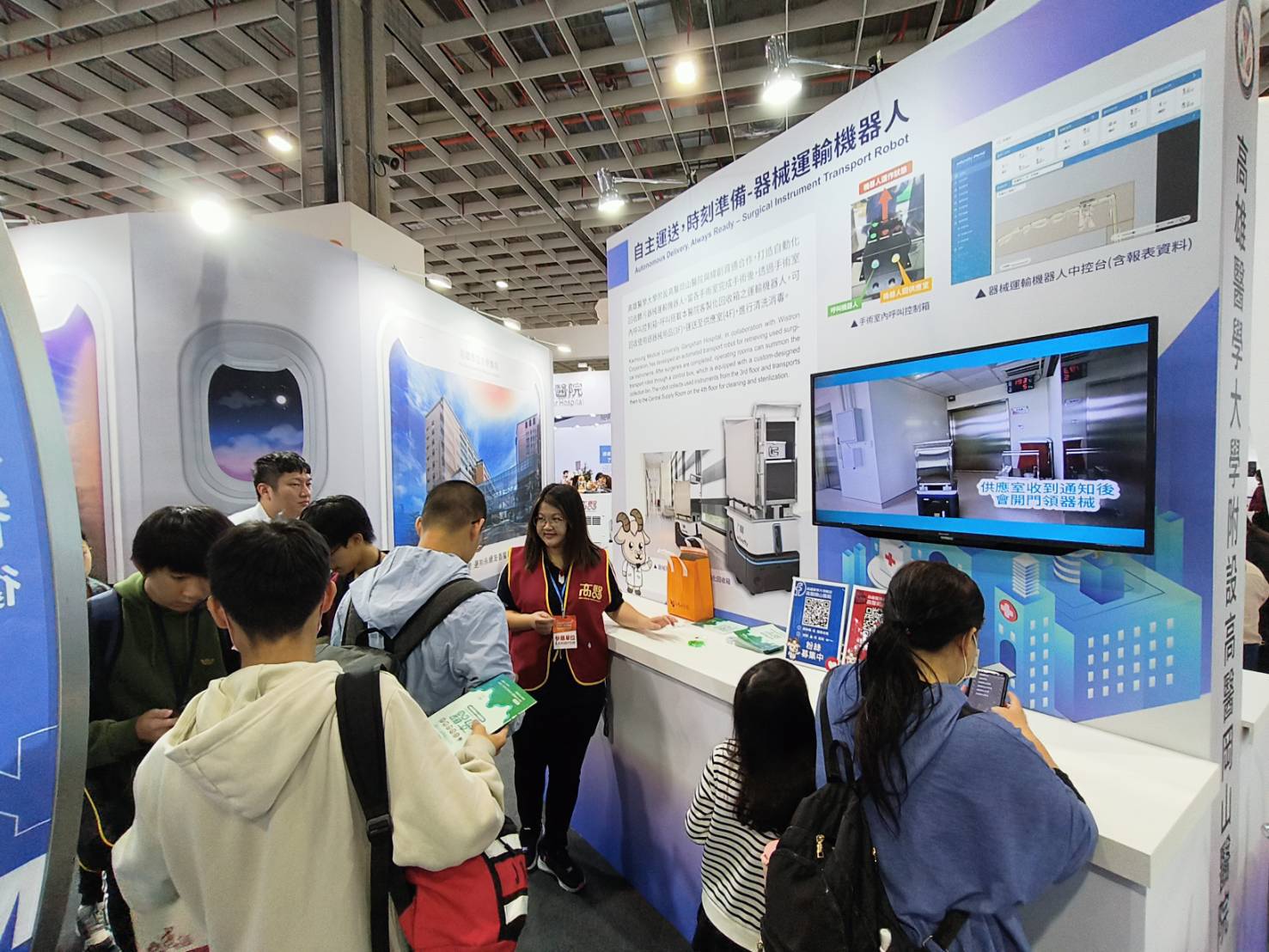 2024年台灣醫療科技展今(8日)在南港展覽館進入最後一天,高雄醫學大學醫療體系(高雄醫學大學、高雄醫學大學附設中和紀念醫院、高雄醫學大學附設高醫岡山醫院、高雄市立大同醫院、高雄市立小港醫院、高雄市立旗津醫院)展出多項智慧管理與醫療科技的創新成果,其中,高醫岡山醫院今年於醫療展首度亮相的「自主運送,時刻準備-器械運輸機器人」、「智慧導航,輕鬆到達-智慧輪椅應用帶您趴趴走」,更展現智能科技對醫療產業帶來的效率與人性化體驗。