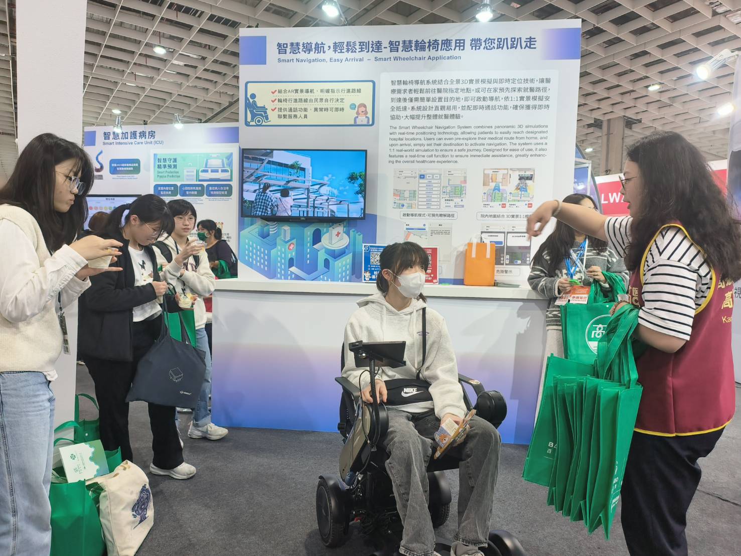 另一項頗受體驗民眾肯定的「智慧導航,輕鬆到達-智慧輪椅應用帶您趴趴走」,則是由搭載在輪椅上的智慧輪椅導航系統,結合全景3D實景模擬與即時定位技術,讓醫療需求者輕鬆前往醫院內指定地點;民眾林小姐體驗後認為,電動輪椅結合智慧導航,操控方便簡單,依1:1模擬實景,很快就能找到就診位置。系統設計直觀易用,並配即時通話功能,確保獲得即時協助,大幅提升整體就醫體驗。