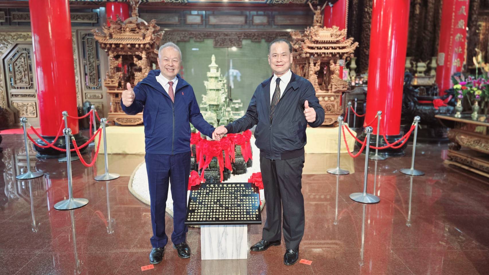 陪同陳其邁市長見證「九龍玉石龍船」揭幕的有保安宮董事長黃明華及理監事,立委許智傑、李昆澤與業餘高爾夫三冠王(南一、信誼、斑芝花)三座球場的球王楊贄嘉皆參與盛事。