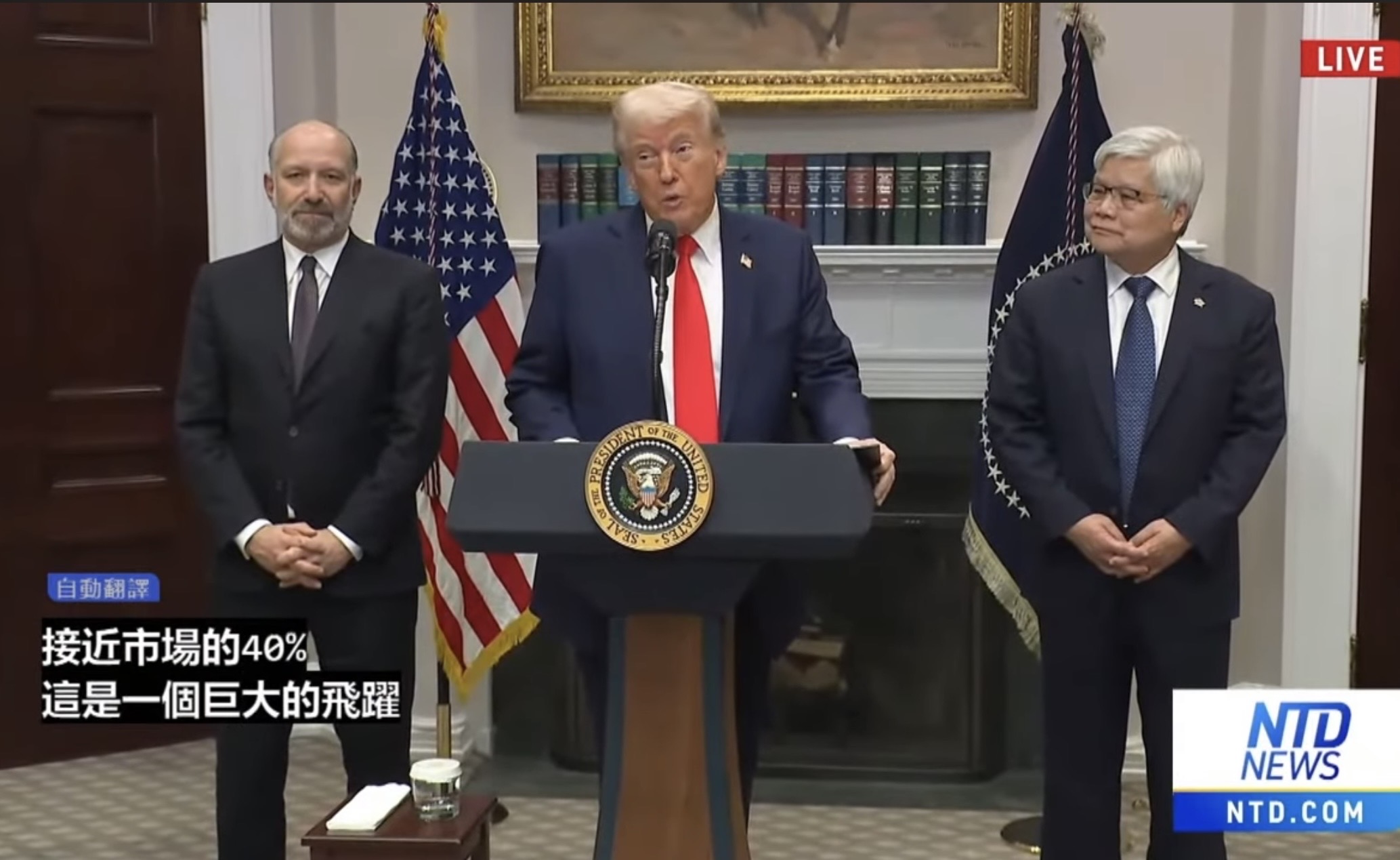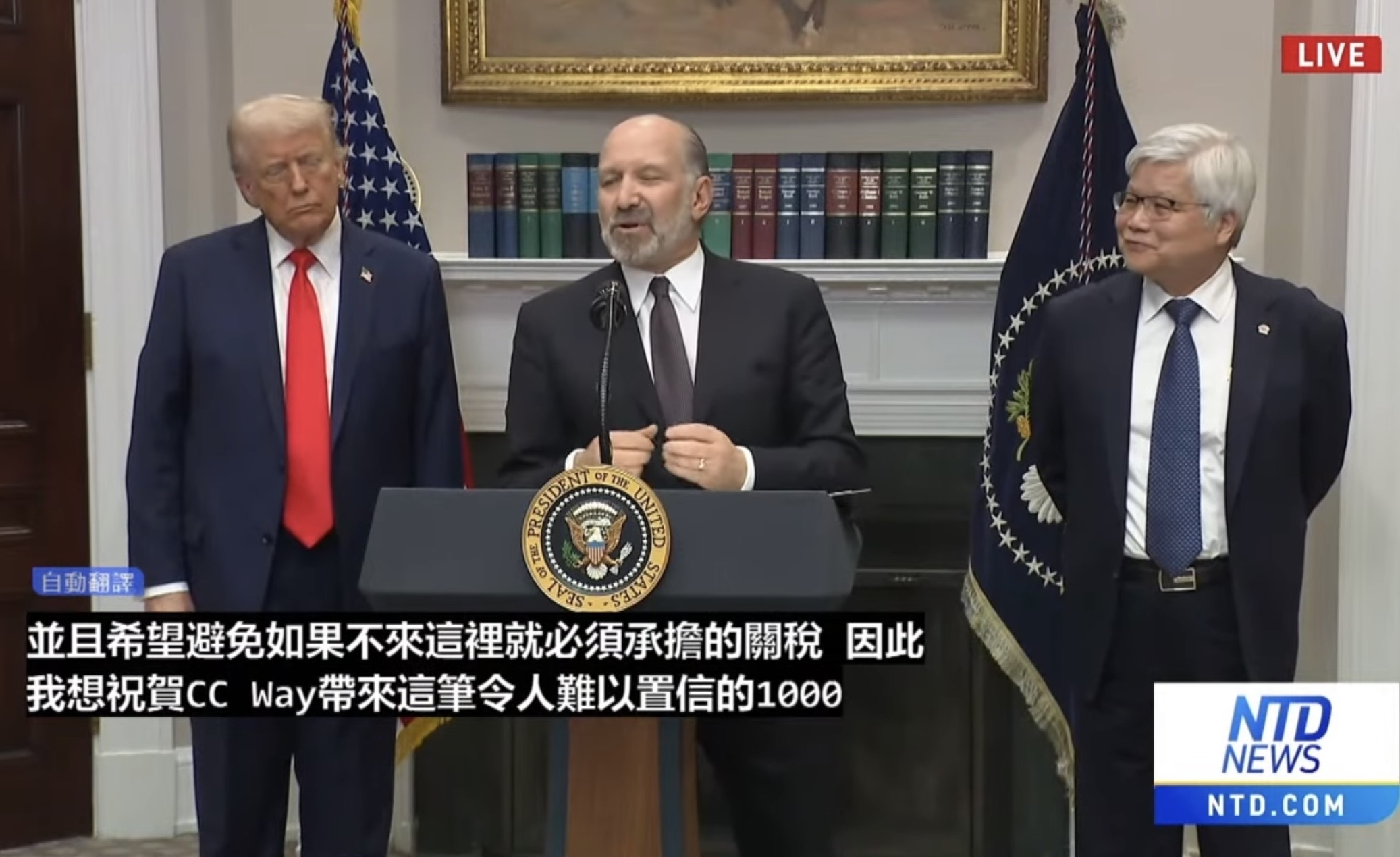 川普總統見證下台積電總裁魏哲家在白宮宣布在美國增加投資1000億美元