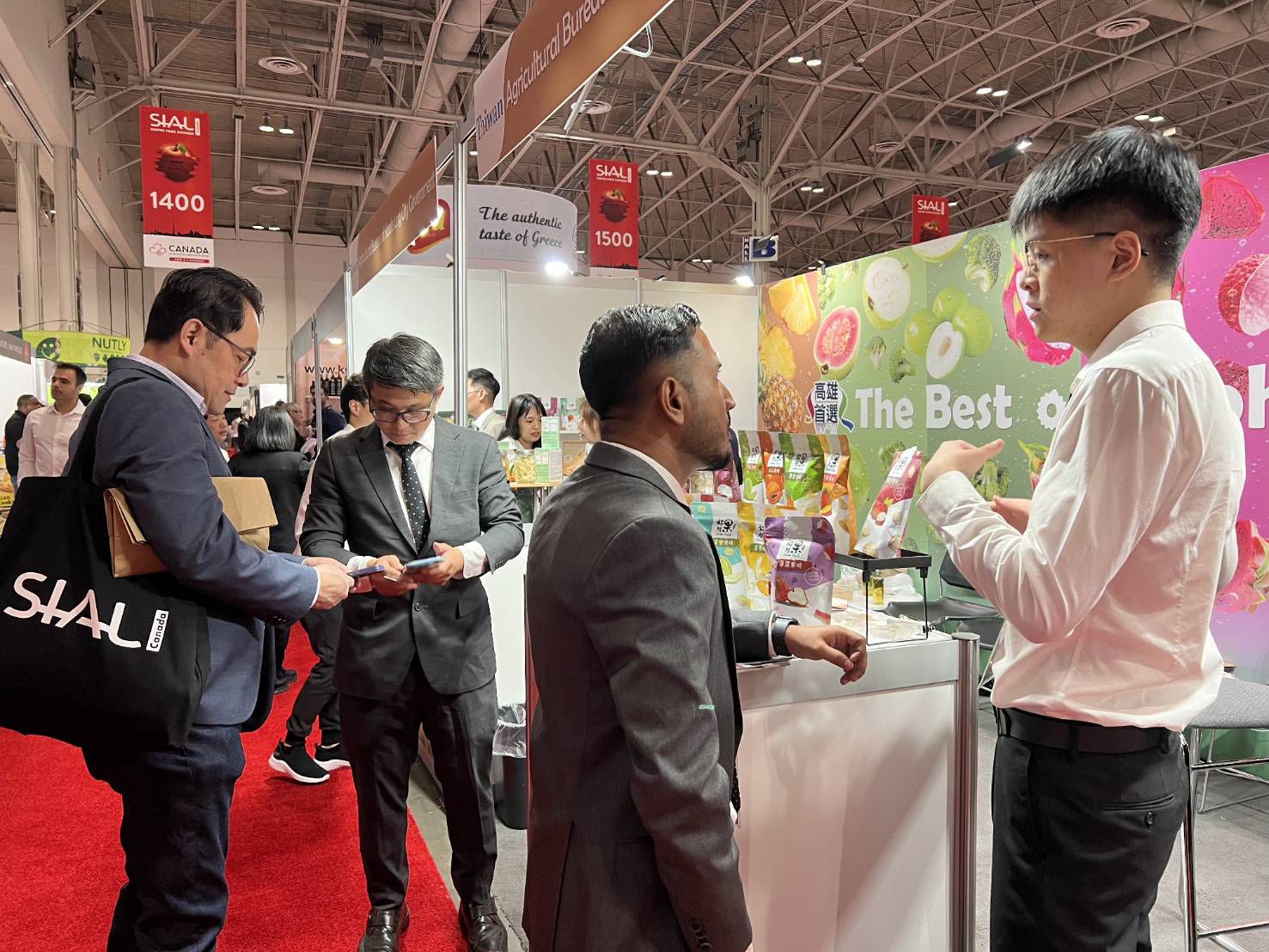 「2025加拿大國際食品展(Sial Canada)」於多倫多當地時間29日盛大開幕,高市府農業局首度率領農民團體參展,展出多樣高雄優質農產品,除了外銷加拿大主力果品-番石榴、蜜棗,也展出高雄水果製作而成的凍乾果脆、著名的玉荷包蜂蜜以及青花菜脆片等,熱帶蔬果的風味在展場大放異彩,吸引買家駐足洽詢 ,駐多倫多台北經濟文化辦事處梁毅鵬處長亦到場支持,展場熱絡、成果斐然。