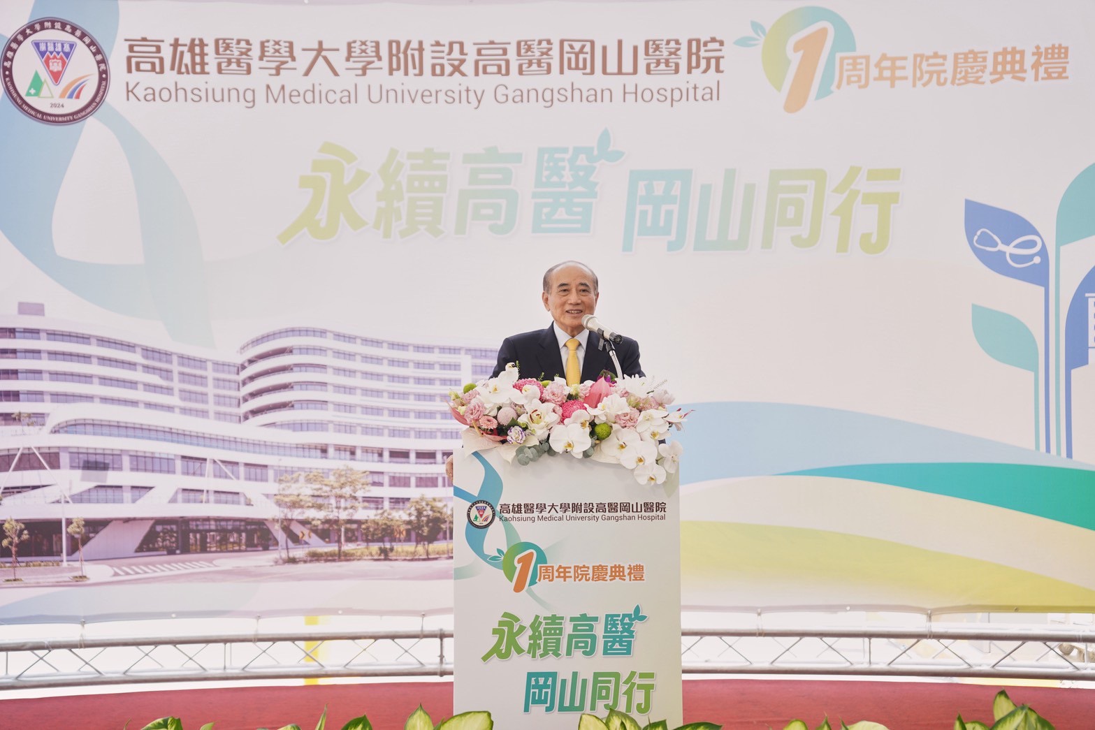 周年慶邀請多位貴賓蒞臨,包括前立法院院長王金平、健保署高屏業務組組長林淑華、高雄醫學大學董事長陳建志、高雄醫學大學副校長林志隆及體系醫院各院長,更邀請一路以來支持高醫岡山醫院成長、茁壯的區里長及地方人士出席,共同見證醫院自籌設以來資源逐步完備的重要歷程。