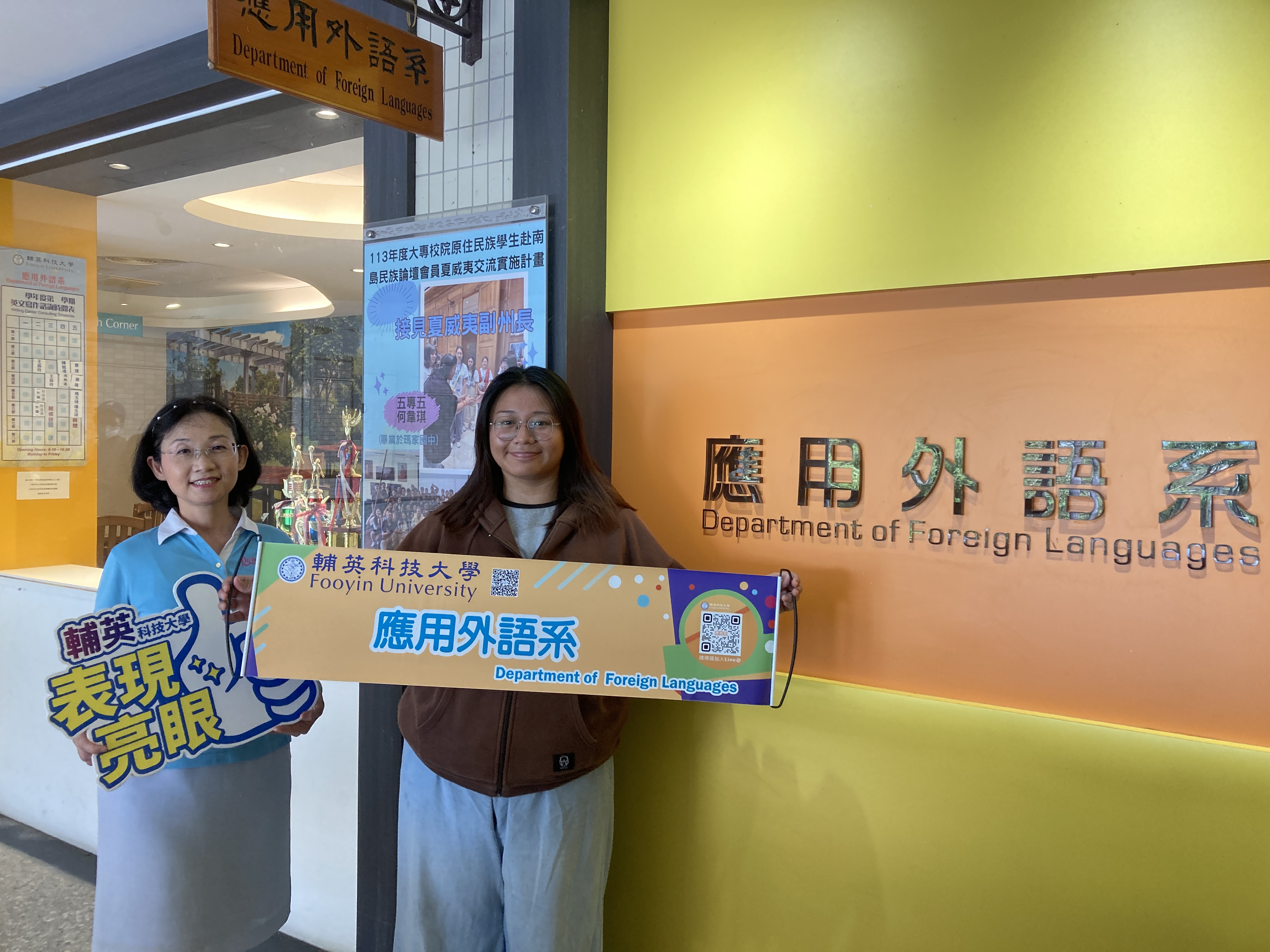 簡綺瑩指出,何韋琪同學(瑪家國中畢)來自屏東縣瑪家鄉,曾經懷抱空姐夢,希望能與不同國家的人交流,今年以優異成績獲原民會選往夏威夷交流,師生都為她感到高興與驕傲。