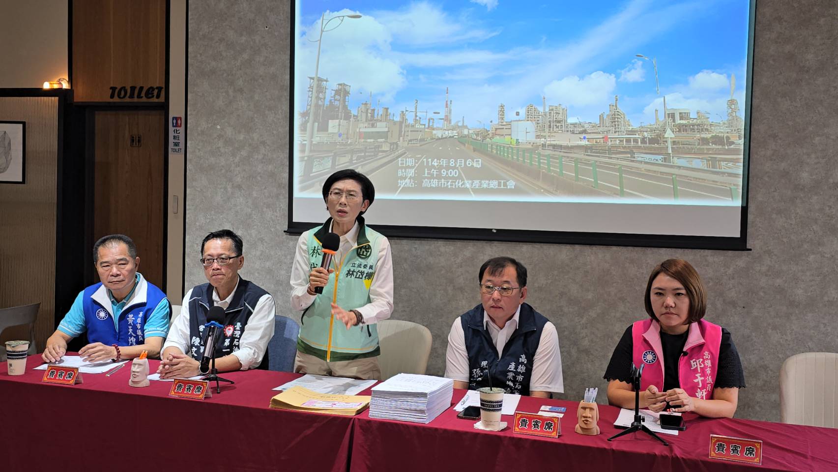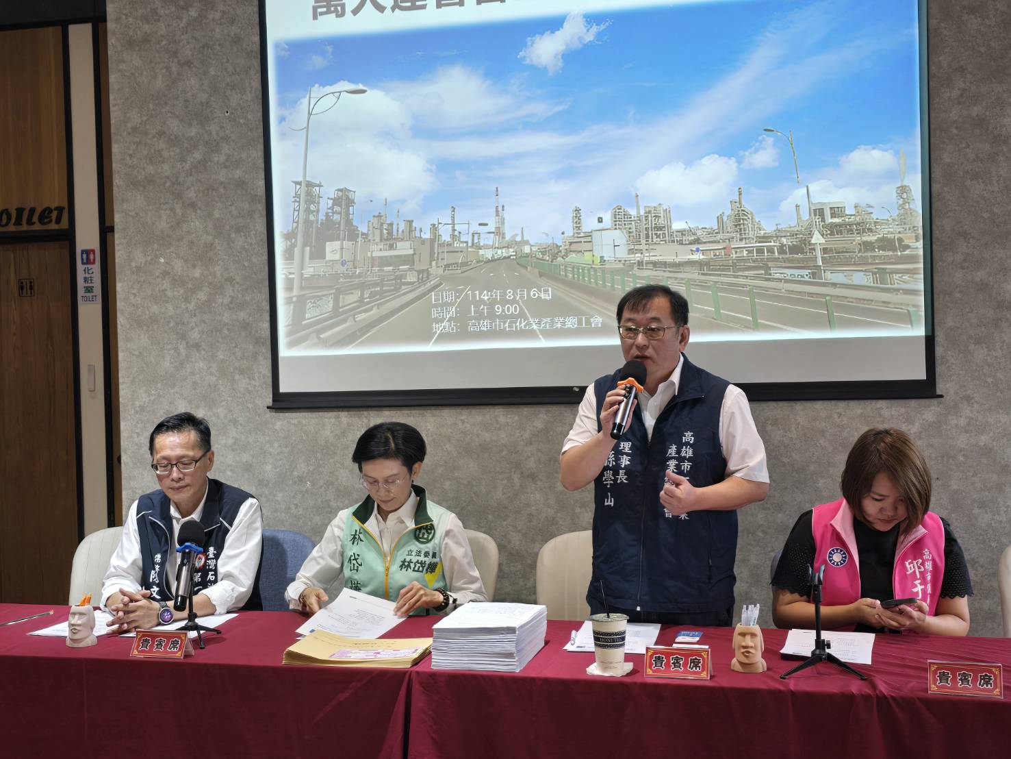 今(6)日上午9時,高雄市石化產業總工會召開記者會,集結林園、仁大石化廠等產業工會共30多位理事長,並由立法委員林岱樺、市議員李雨庭、邱于軒、黃天煌、林園里政會主席洪進財及新高雄市產業總工會理事長何政家等人陪同參與。會後並將1萬2千份石化勞工的連署陳情書郵寄至總統府。