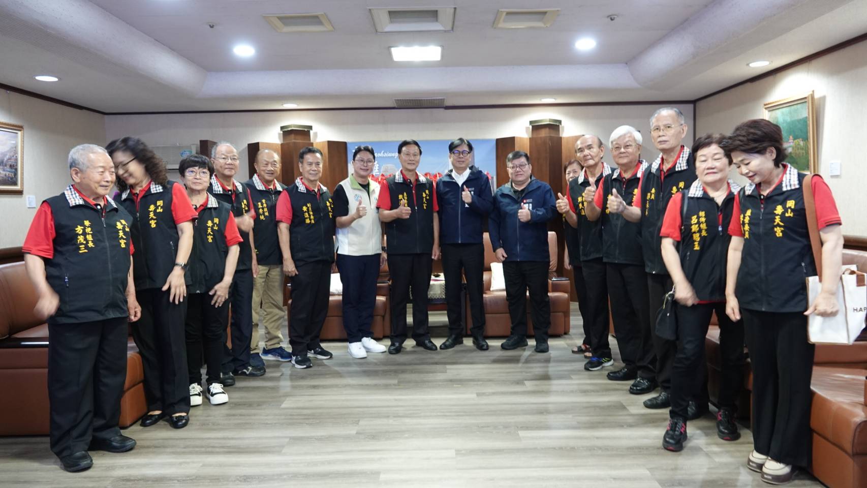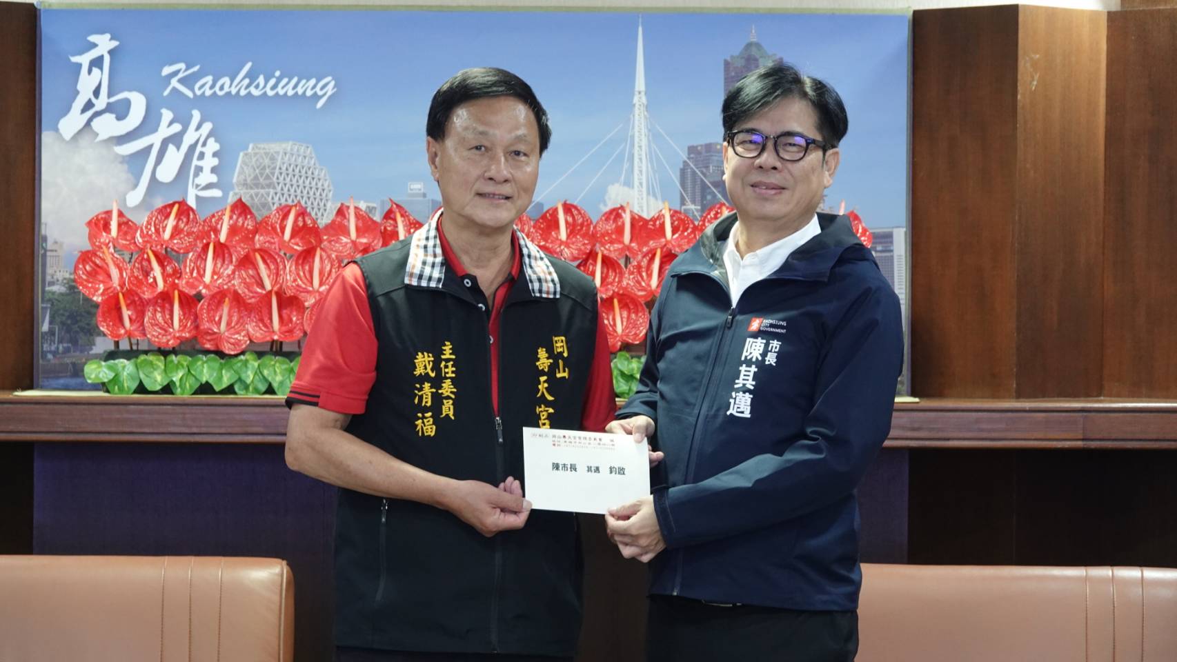 【本報記者陳明成高雄報導】岡山壽天宮12月6、7日史無前例地舉辦一場「高雄三山媽祖平安賜福遶境」活動,27日上午壽天宮管理委員會特地前往高雄市政府拜會陳其邁市長,共商「高雄三山媽祖會」的活動事宜,陳其邁市長表示,這是高雄的大事,將比照「Lady GaGa」的規格辦理,各局處將動起來全力配合。