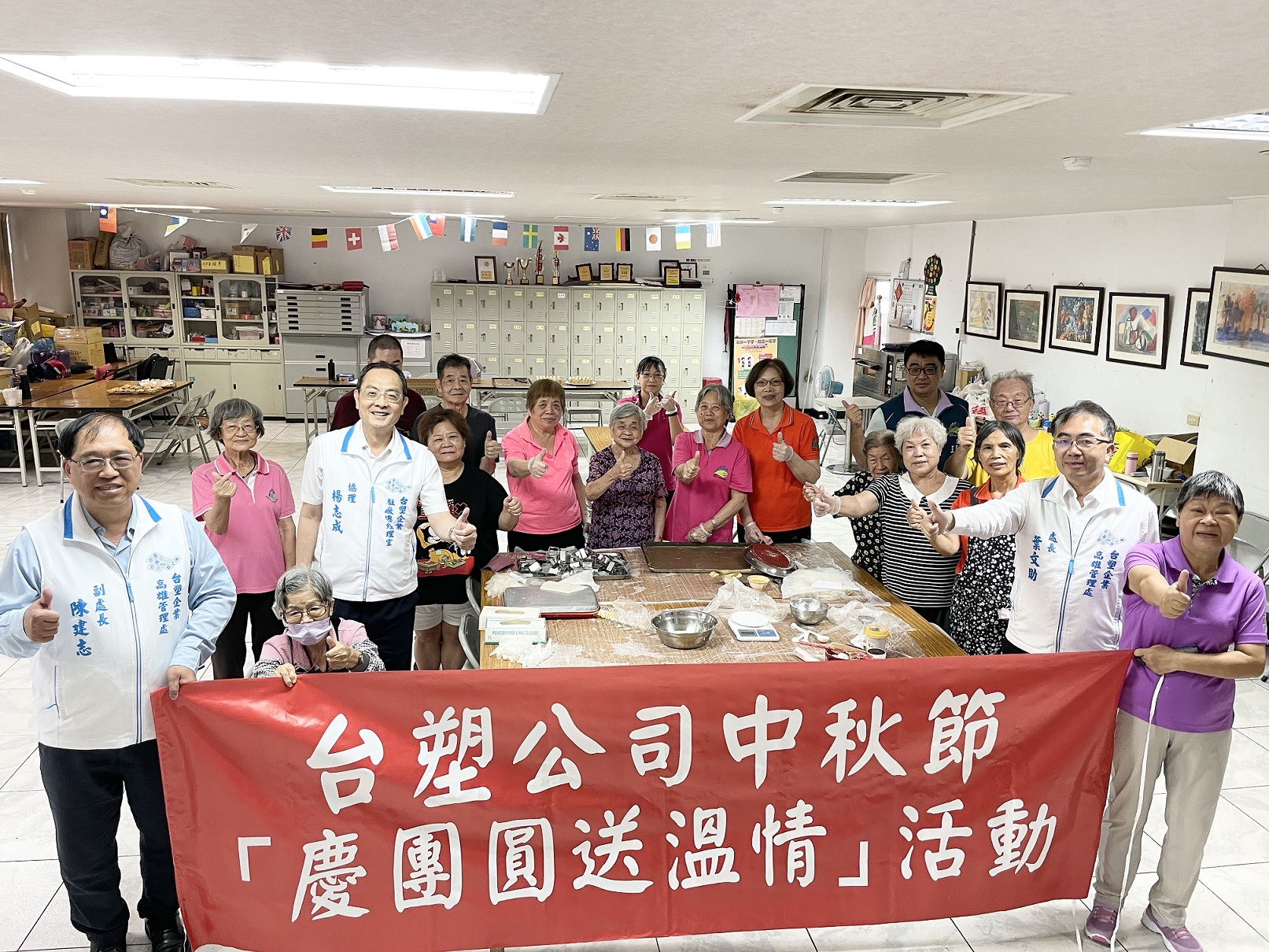 台塑企業仁武駐廠總經理室楊志成資深經理偕同志工同仁到場共襄盛舉,除向現場民眾提前祝賀秋節愉快,楊志成也下場小露一手,親手製作月餅,表達心意,現場洋溢歡樂氣氛。