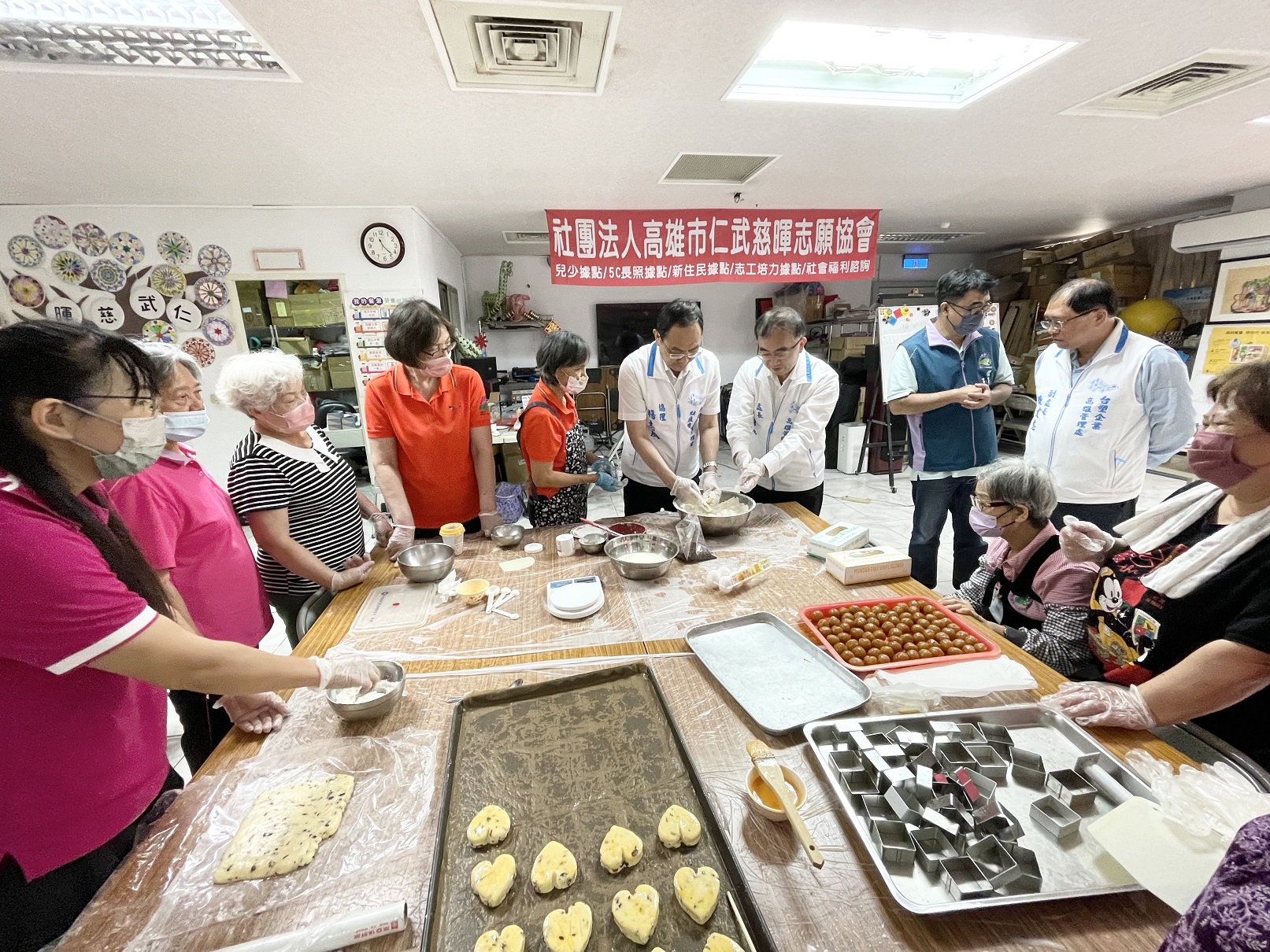 這項由高市府社會局指導,台塑企業贊助辦理的秋節關懷弱勢送溫情活動,行之有年,獲得仁武在地高度認同與支持,今年在台塑贊助經費下,上午於仁武綜合活動中心教室登場,高雄市仁武慈暉志願協會偕據點內的新住民、志工及長者,分組製做月餅及蔓越莓司康。