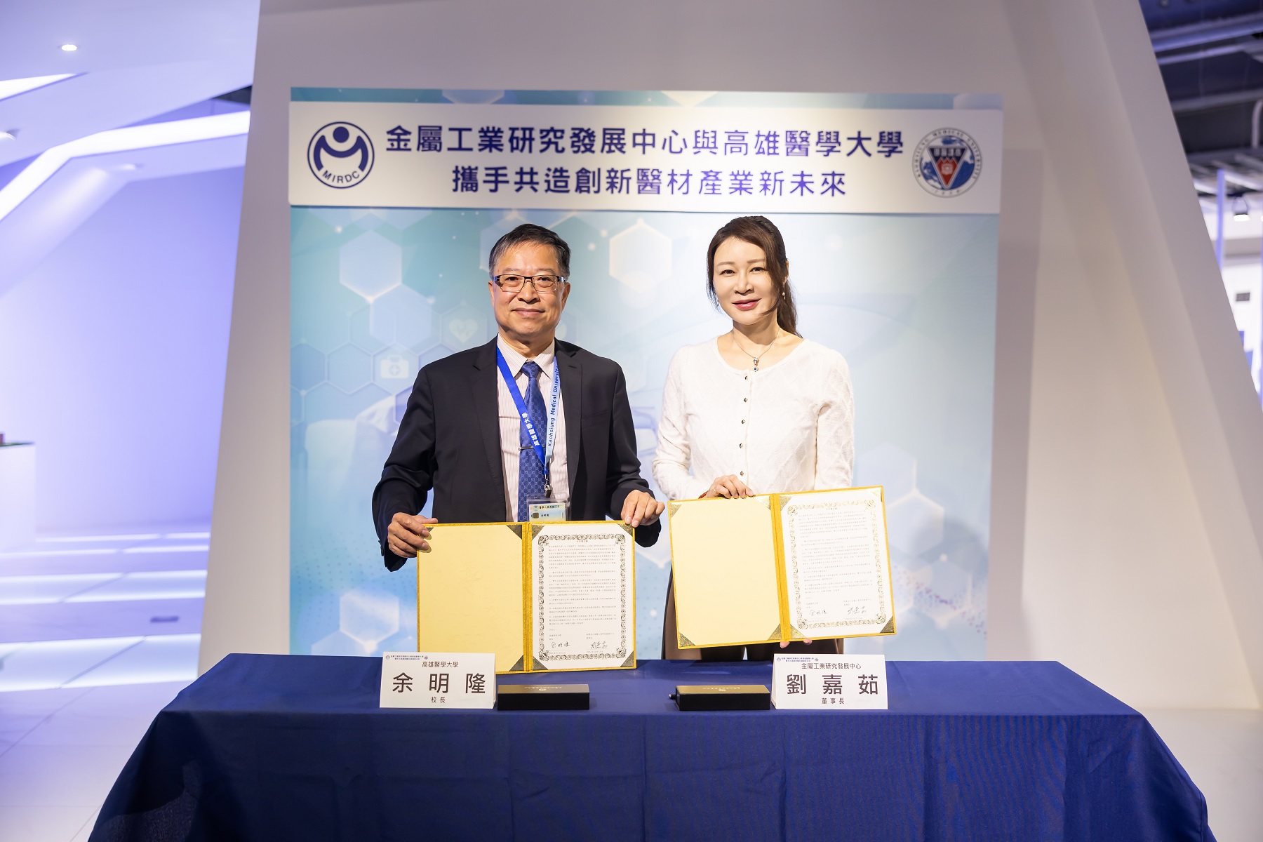 為強化產學鏈結、推動創新醫療器材研發與臨床應用落實,高雄醫學大學與金屬工業研究發展中心(以下簡稱金屬中心)於114年10月13日假南科智慧生醫旗艦館舉行合作備忘錄(MOU)簽署儀式。由高雄醫學大學校長余明隆與金屬中心董事長劉嘉茹共同簽署,在多位長官與貴賓的見證下,正式揭開雙方攜手推動智慧醫療創新合作的新篇章。