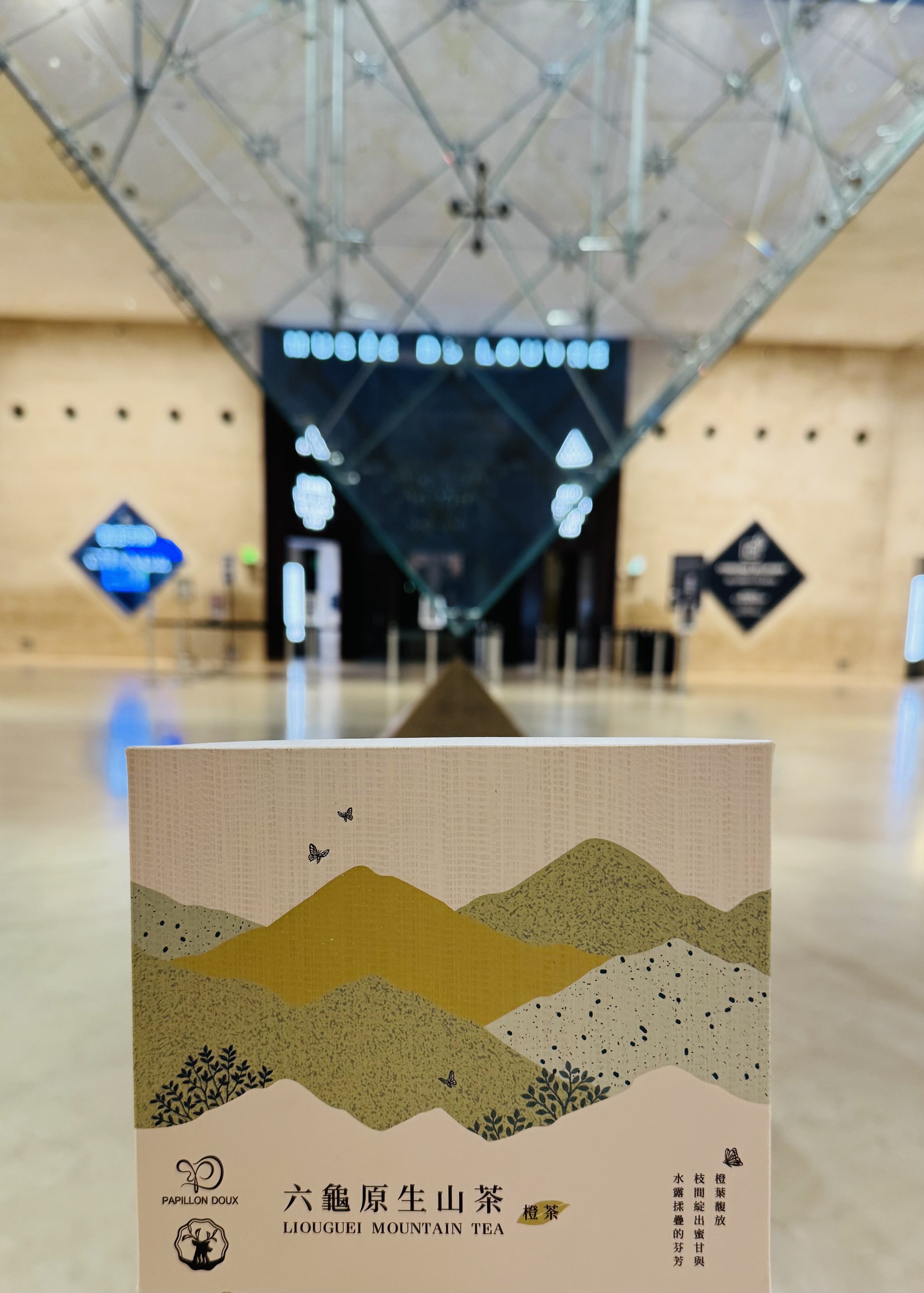 新發社區「六龜原生山茶」拓展國際知名度,透過農業部農村水保署計畫支持,除了以「六龜橙茶」榮獲ITI比利時國際風味品質評鑑3顆星最高評價;更在農業局牽線媒合下嘗試跨界合作,這次在美妝界與亞灣新創香氛品牌「PAPILLON DOUX」創辦人許智傑博士合作,研發橙茶、青茶、紅茶三種山茶香氛禮盒,於禮盒設計上可前後連接以六龜連綿山峰與紫斑蝶為意象,融合日式簡約風格搭配俳句題字,塑造出高雅脫俗的清麗感,並帶著這款禮盒登上10月15至16日由法國香水化妝品產業協會Cosmetic Valley在巴黎羅浮宮舉行的「Cosmetic 360」展覽會,讓260多家參展商及超過5000位觀展來賓感受到高雄山茶獨特香氣的魅力。