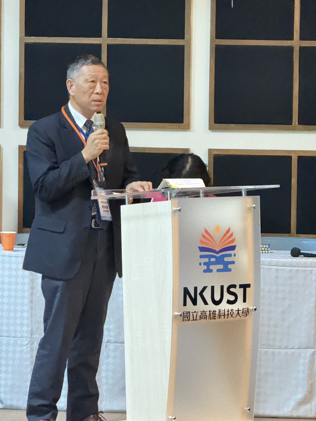 高科大在活動導入「RFID智慧報到系統」,貴賓入場時自動辨識姓名與顯示歡迎訊息,展現人性化科技應用特色,讓與會者感受高科大將智慧科技融入生活服務的實力。