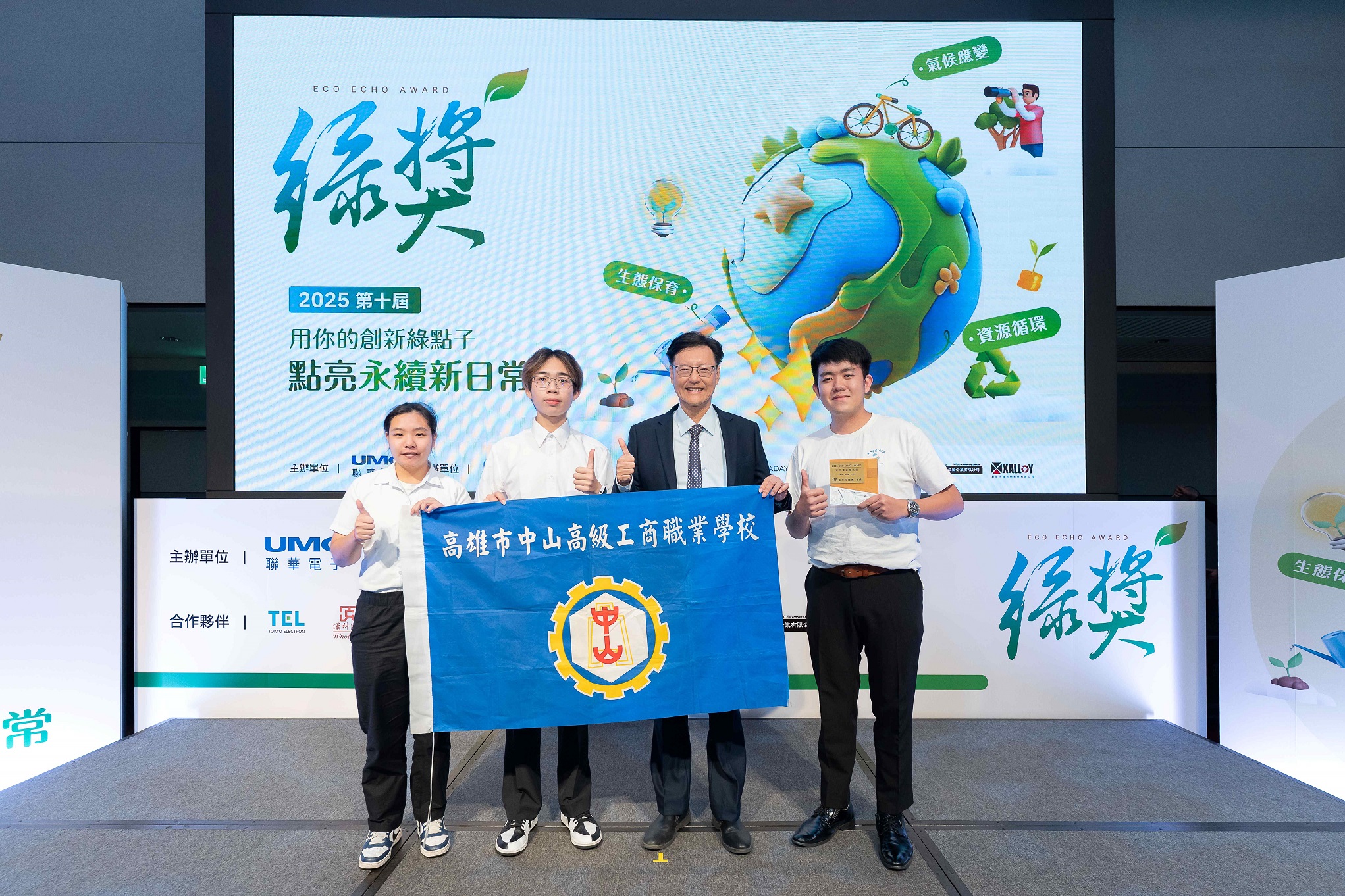 聯電綠獎自2014年創辦以來,旨在鼓勵青年採取實際行動關懷地球環境議題,今年競賽主題聚焦「氣候應變」、「生態保育」與「資源循環」三大面向,中山工商大有斬獲,26日在新竹喜來登大飯店接受公開表揚,首獎獲五萬元獎金及獎座。