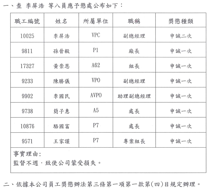 中鋼構貪污弊案懲處副總以下,引發爭議!