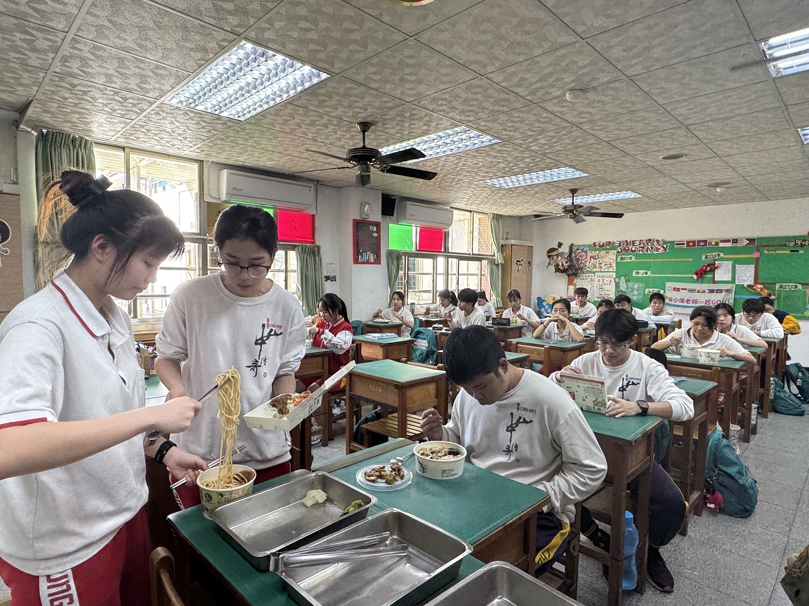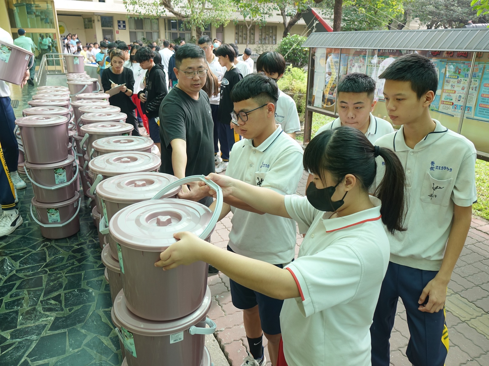 學務處鄧一帆主任指出,「愛臺灣的新生活運動」包含「減量、分類、教育」三大主軸,六大步驟包括一、推動「鮮食分享」制度,鼓勵學生在開餐前先行分食,避免新鮮食物成為廚餘。二、落實適量選餐與惜食觀念,校內商店實施「餐量分級」,鼓勵學生依食量選購適合的份量,以完食表達對食物的尊重。三、將品德教育融入廚餘議題課程,強化學生對環境議題的理解與同理,以實際行動支持永續。四、餐飲科源頭控管,從備料端就開始分類可食餘量與廢棄物,並建立SOP與檢核表,以乾濕分離方式提升回收率,減少不必要浪費。五、宿舍及外食同步管理,假日外食學生亦須遵循統一規範,避免假期行為成為廚餘減量斷層。六、強化設施與數據化追蹤,衛生組提供乾濕分離廚餘桶,固體廚餘交由清潔隊處理,湯水則導入校內解油槽。