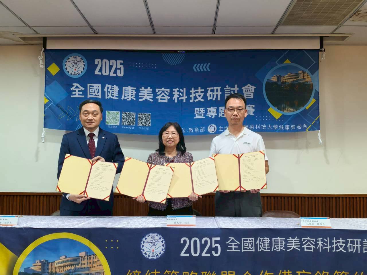 該校與中華長生美學再生醫學會及中華美容美睫發展協會正式簽署MOU策略聯盟,共同推動美容健康領域之專業交流與人才培育。中華美容美睫發展協會具勞動部TTQS認證資格,此次合作並協助該校完成「皮膚管理從業人員技能認證檢定試場」掛牌,象徵該校具備專業檢定場域之認可與資格。未來將以此為基礎,強化證照輔導與產學合作,提升學生專業技能與職涯競爭力,為美容科技教育注入新動能。