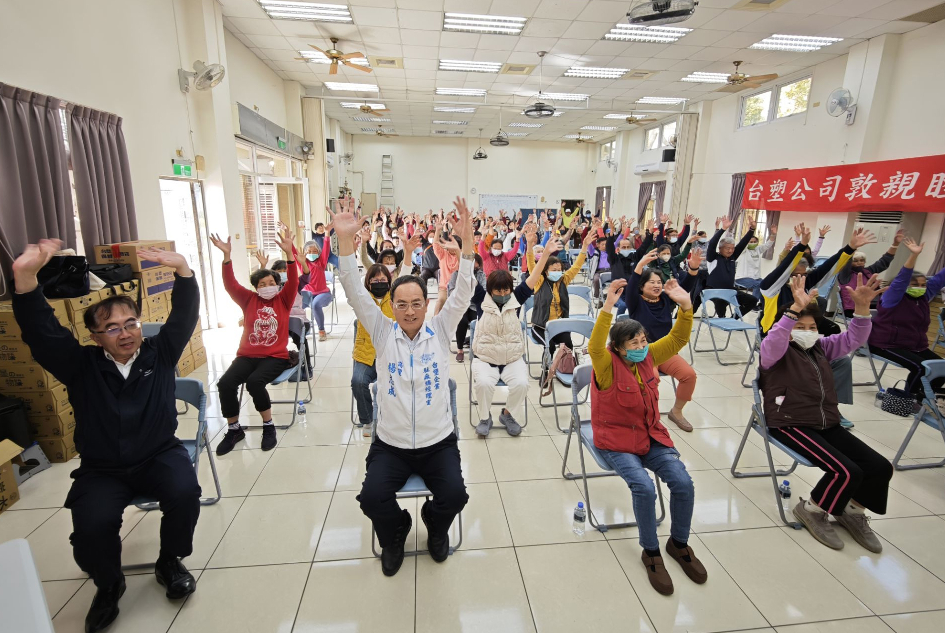 【本報記者陳明成高雄報導】年關將屆,台塑企業關心民眾飲食健康,攜手長庚醫療團隊舉辦「社區健康促進講座與健康操活動」,吸引一百多位仁武區文武里居民出席。台塑楊志成資深經理前陣子身體不適,免疫力下降,籲請鄉親務必要「吃得安心、動得健康」,人人喫百二。