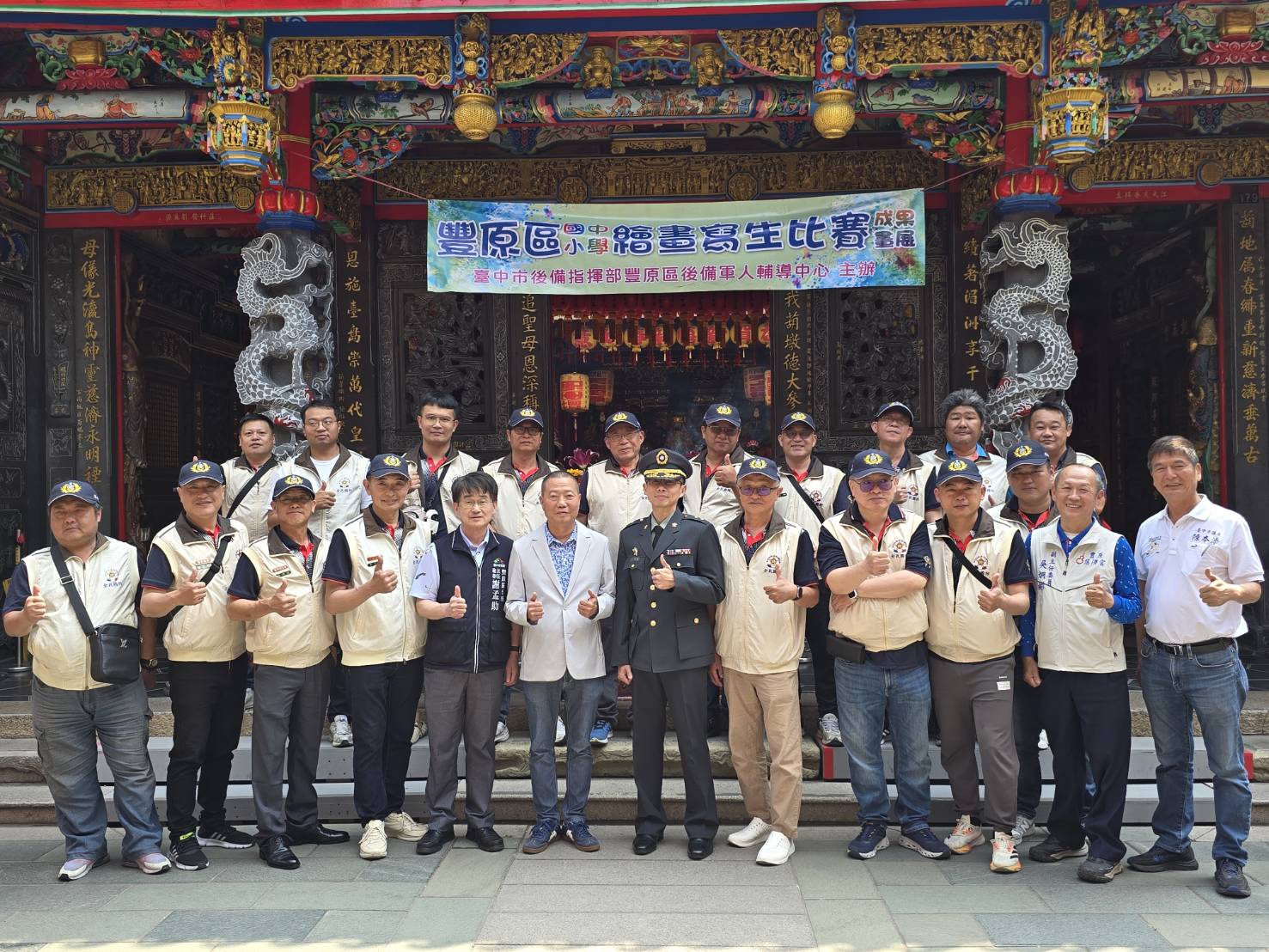 台中市豐原區公所主秘謝孟助致詞表示,首先要感謝臺中市後備指揮部豐原區後備軍人輔導中心的努力,每年都辦理寫生比賽。也要感謝豐原慈濟宮的贊助支援,讓這個寫生比賽活動能夠更加順利、圓滿。