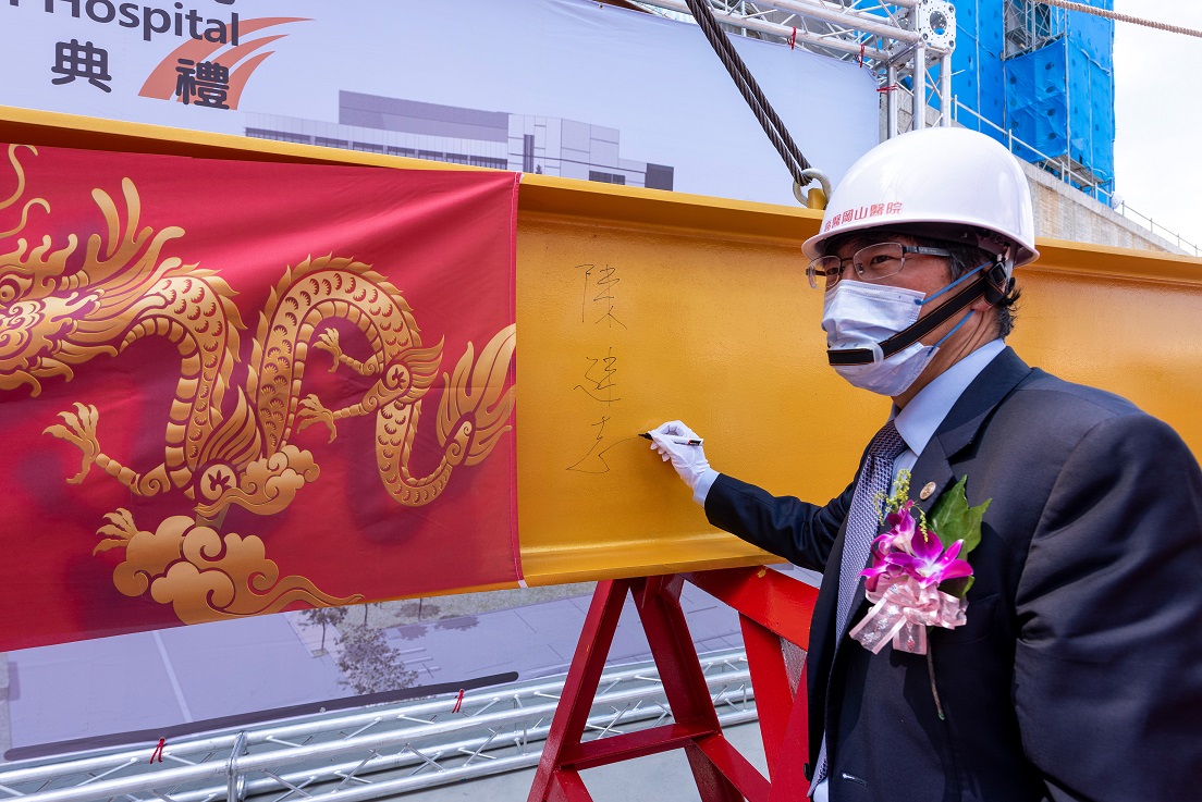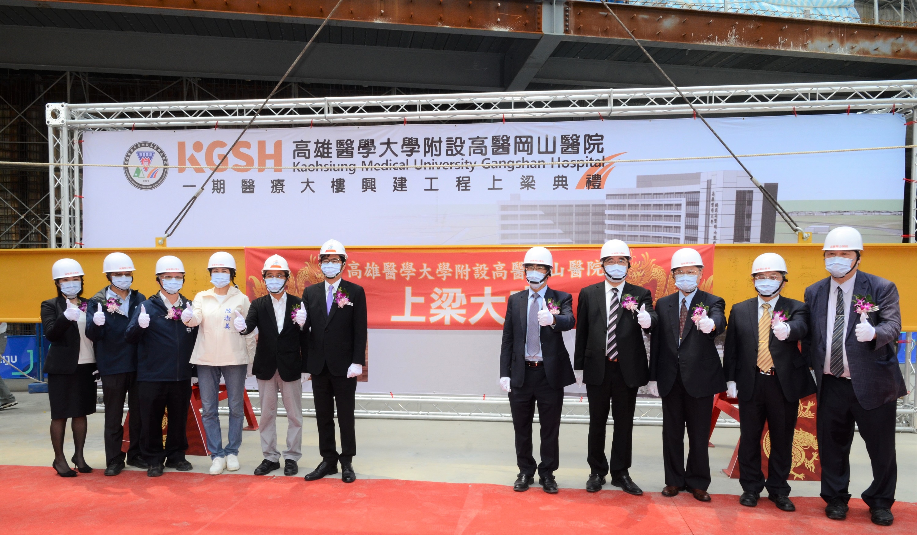 全國第一座設在捷運機廠旁邊的醫院-高雄醫學大學附設高醫岡山醫院,今(13)日上午舉行一期醫療大樓新建工程上梁典禮,邀請高雄市長陳其邁率領市府團隊,與高醫體系醫院首長,以及建築工程團隊等相關代表,共同在主梁鎖上金螺栓後簽名落款,見證工程邁入新的里程碑;醫院預計明(2023)年5月試營運,提供北高雄居民優質的醫療服務。